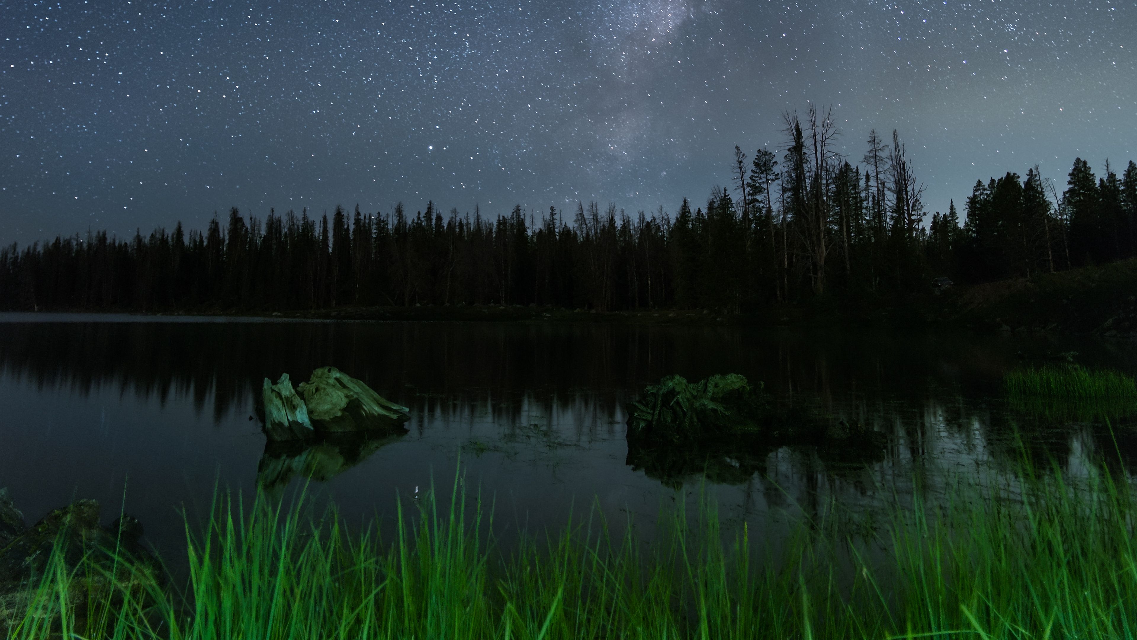 Lake night starry sky image 4k wallpaper