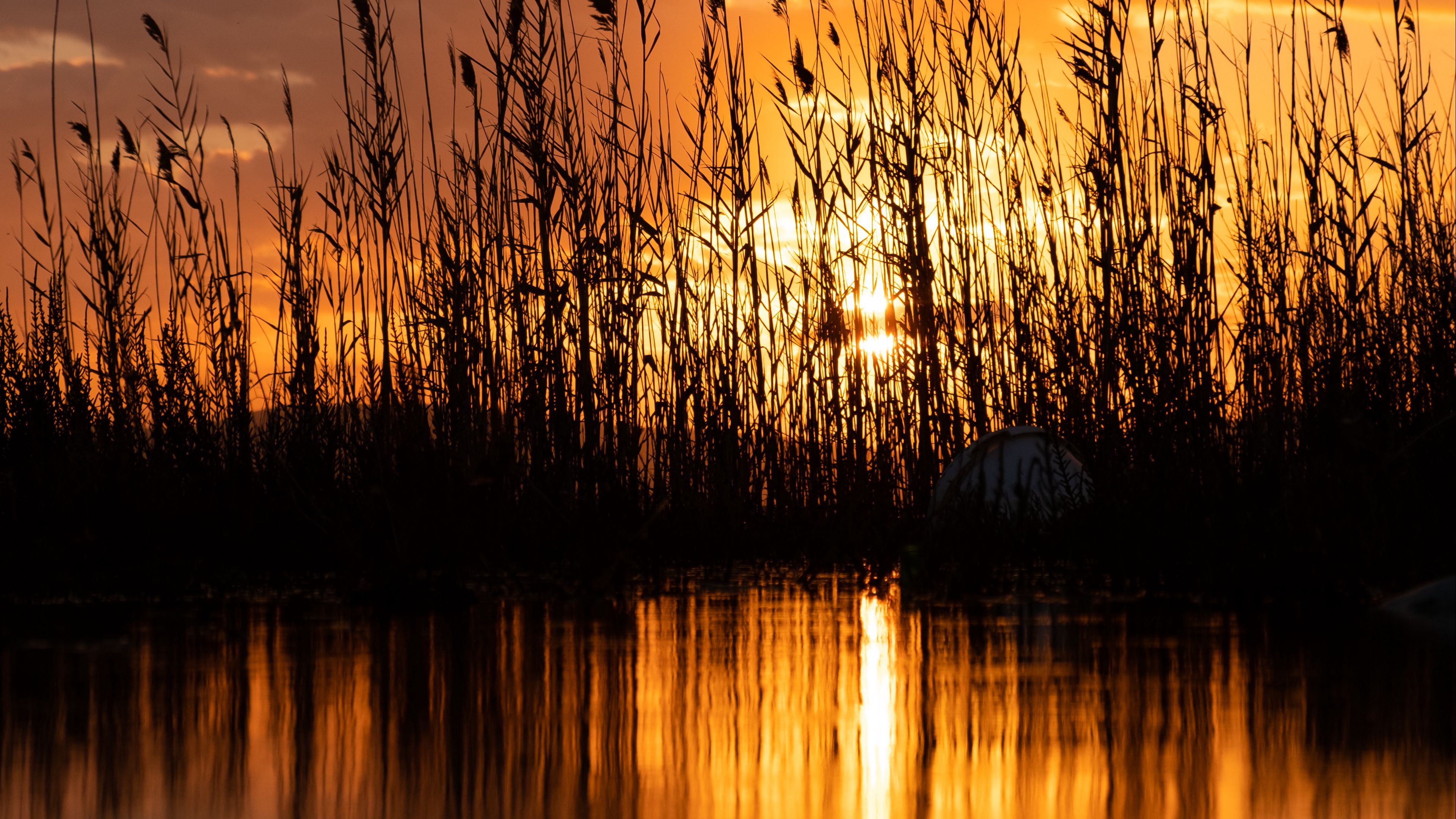 Lake reeds sunset 4k wallpaper Description :