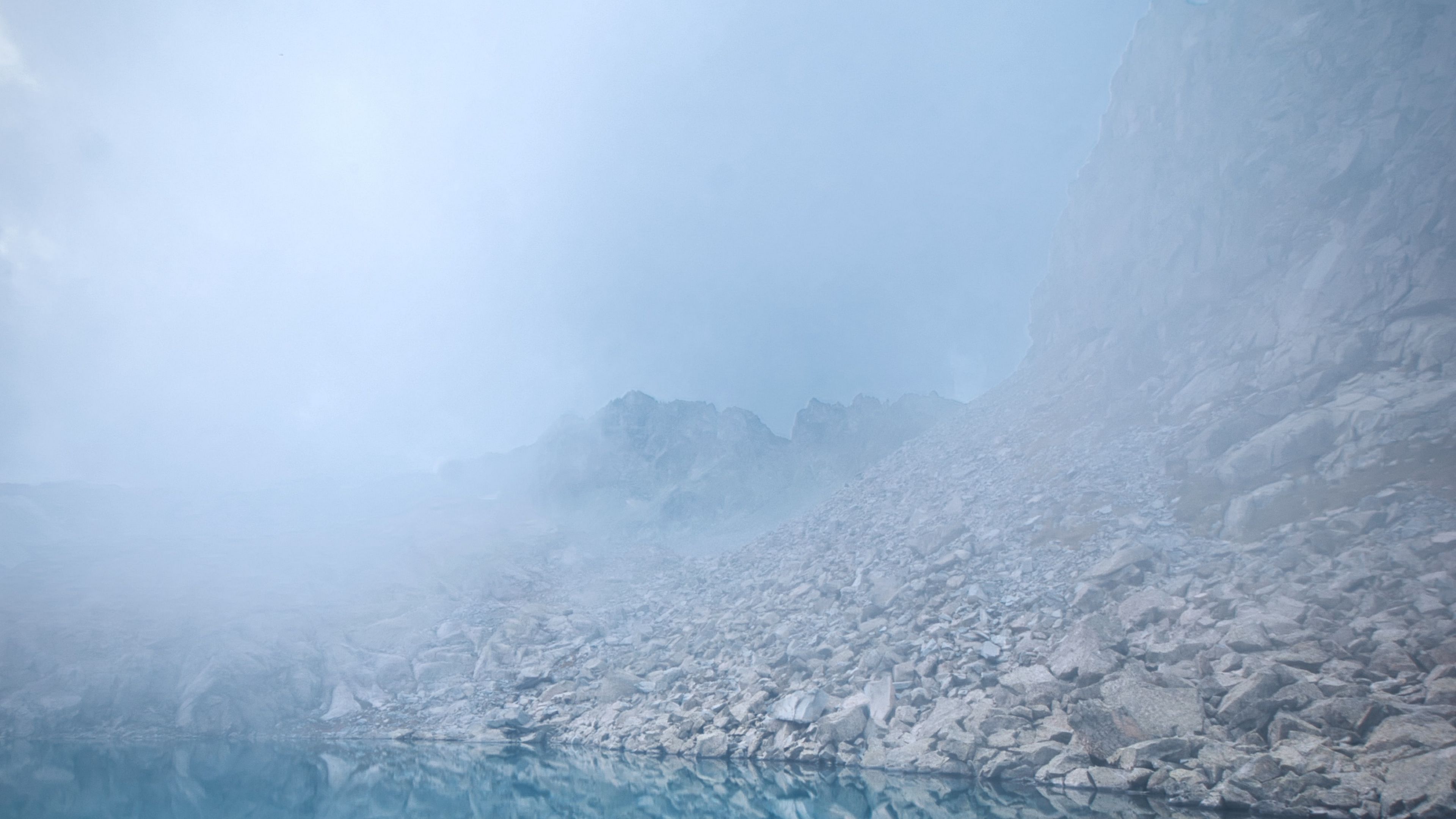 Lake stones fog 4k wallpaper