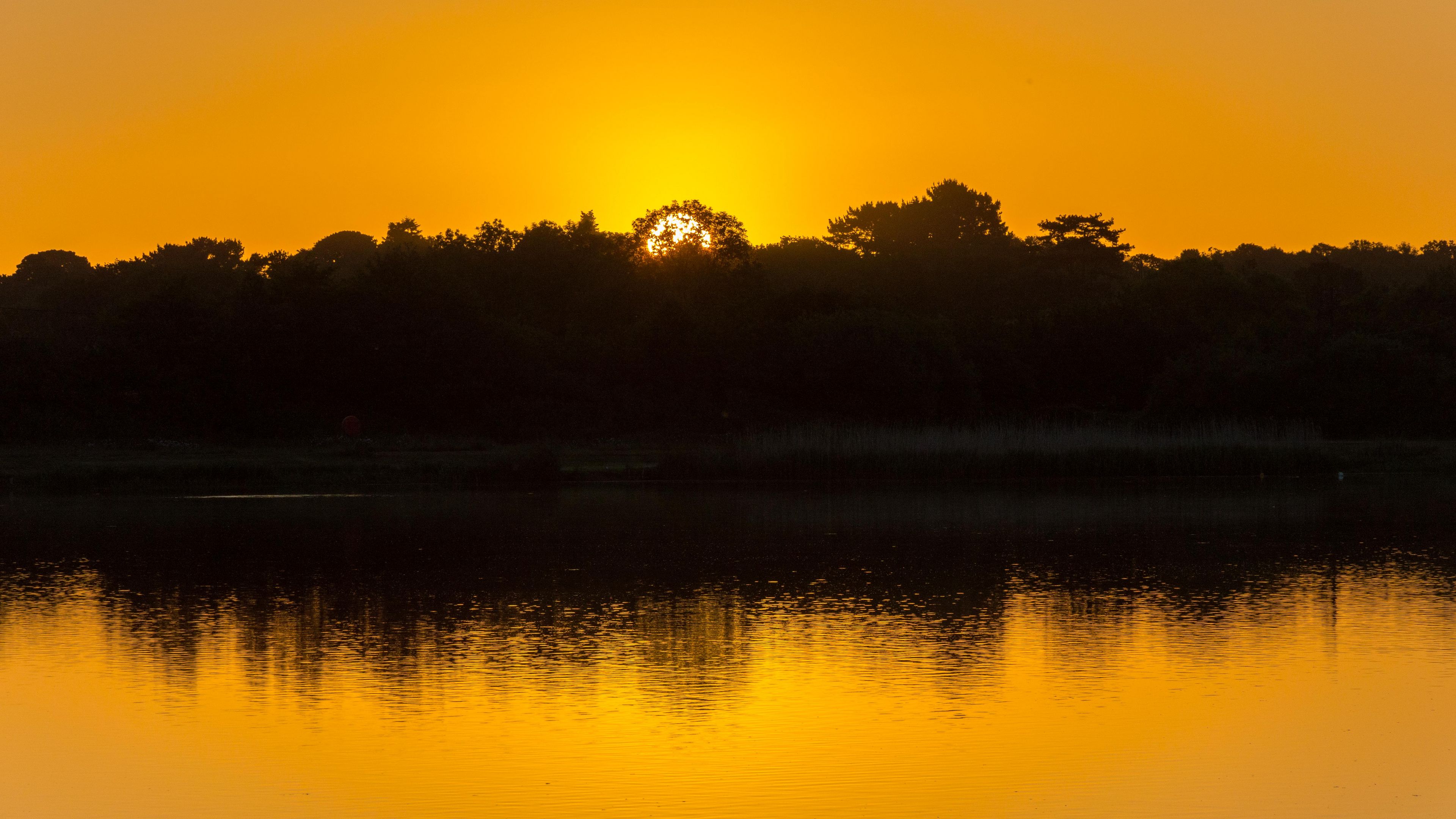 Lake trees sunset 4k wallpaper