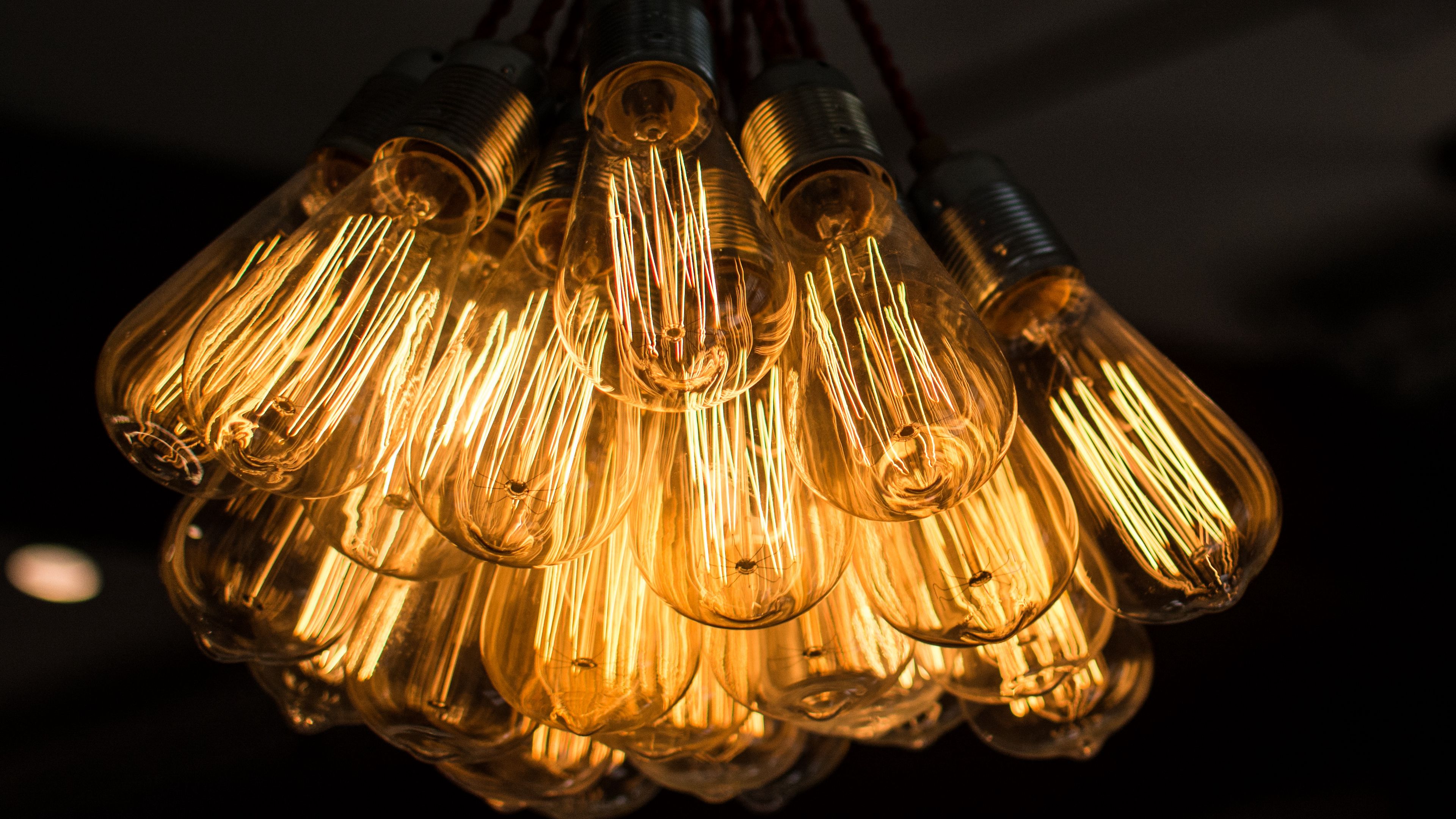 Light bulbs chandelier electricity 4k wallpaper