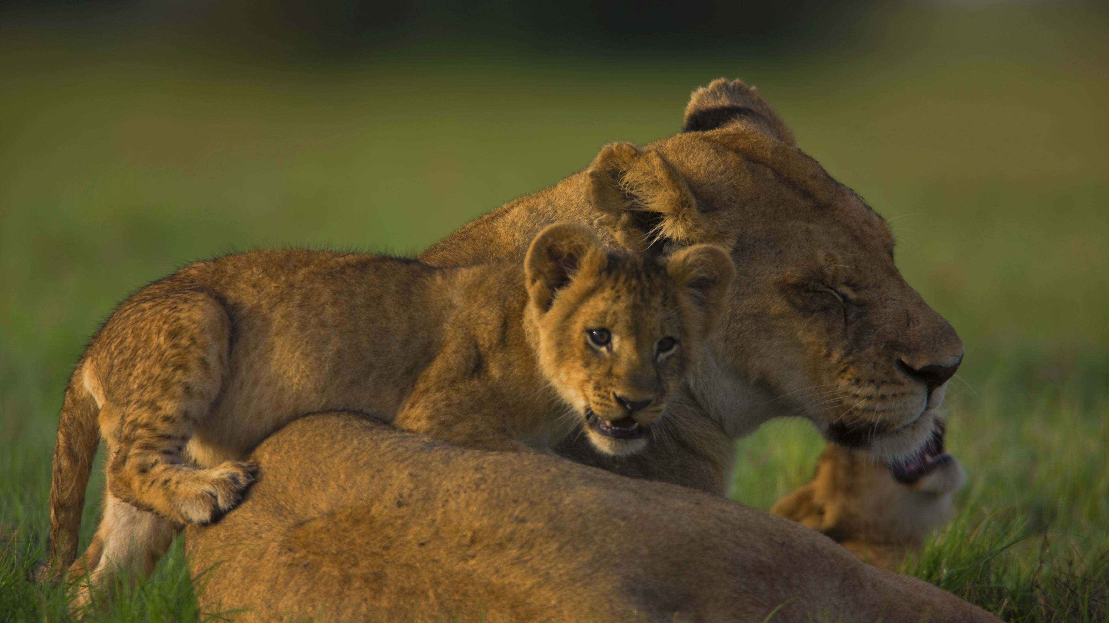 Lion face calves cubs 4k wallpaper