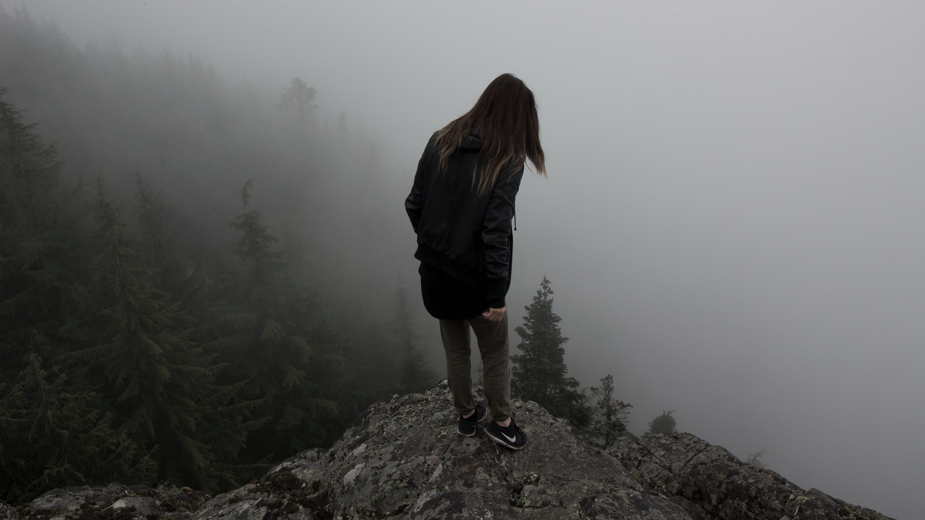 Man hill cliff fog 4k wallpaper Description :