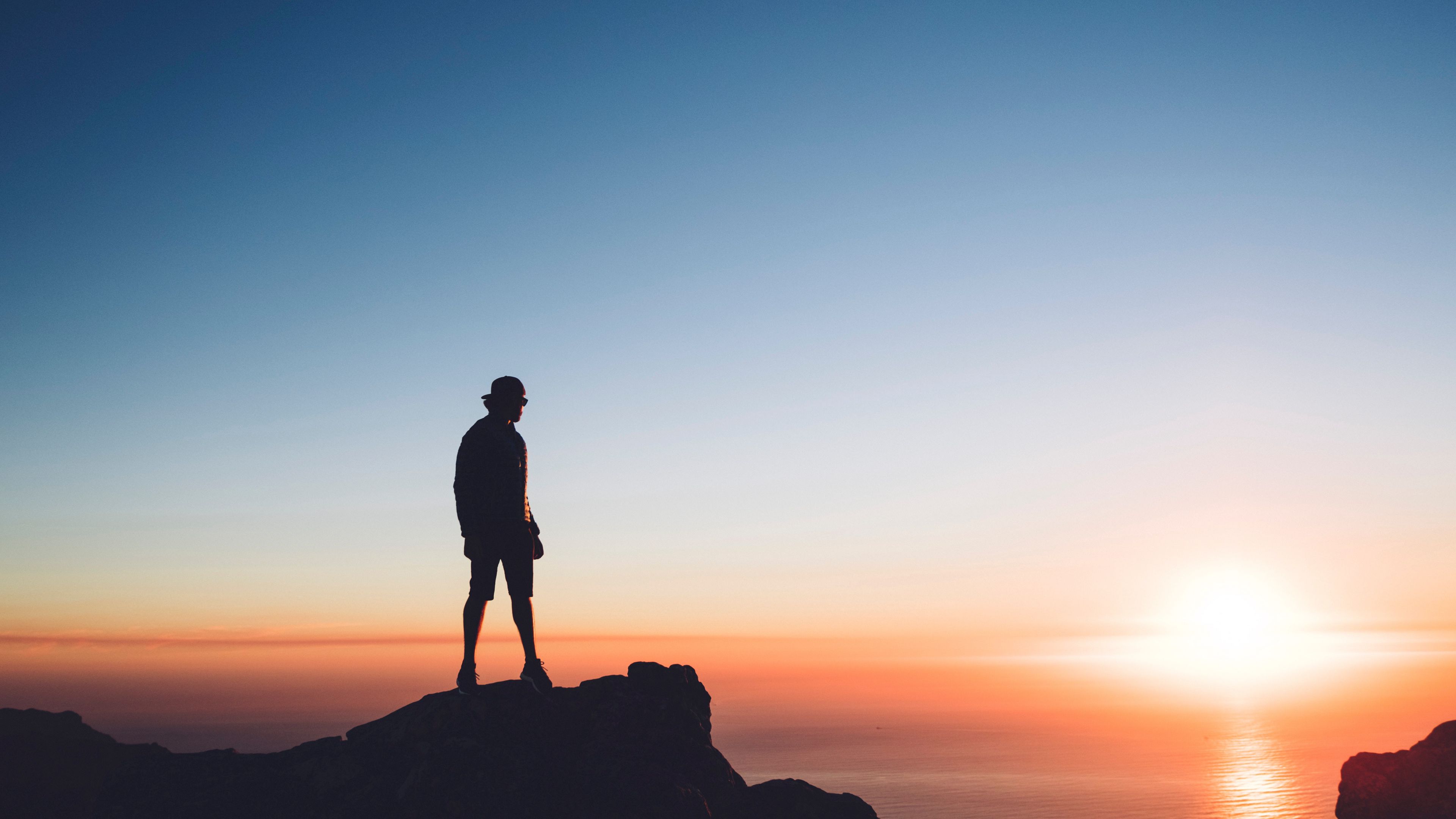 Man rock sea horizon 4k wallpaper Description :