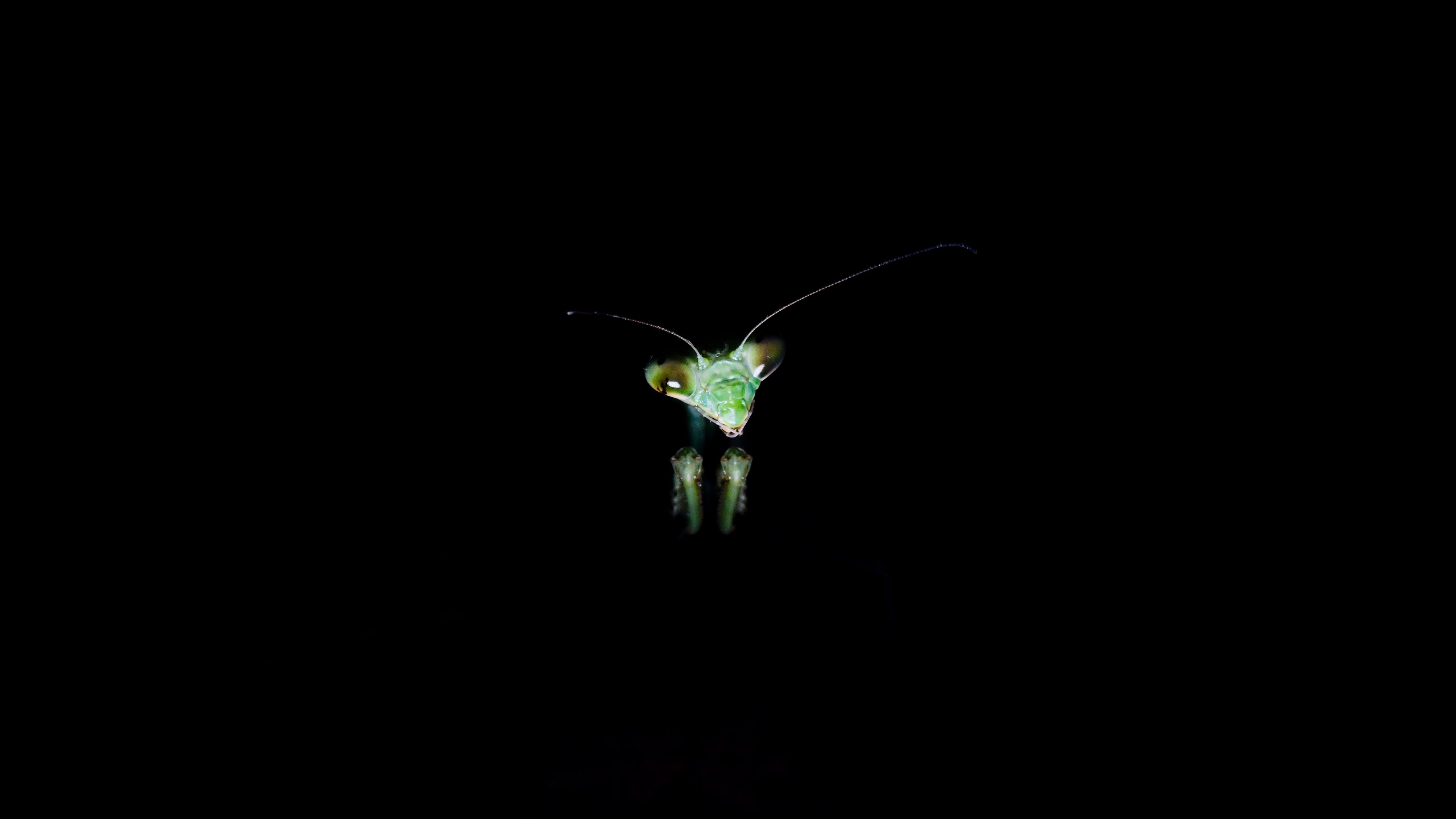Mantis insect dark background 4k wallpaper