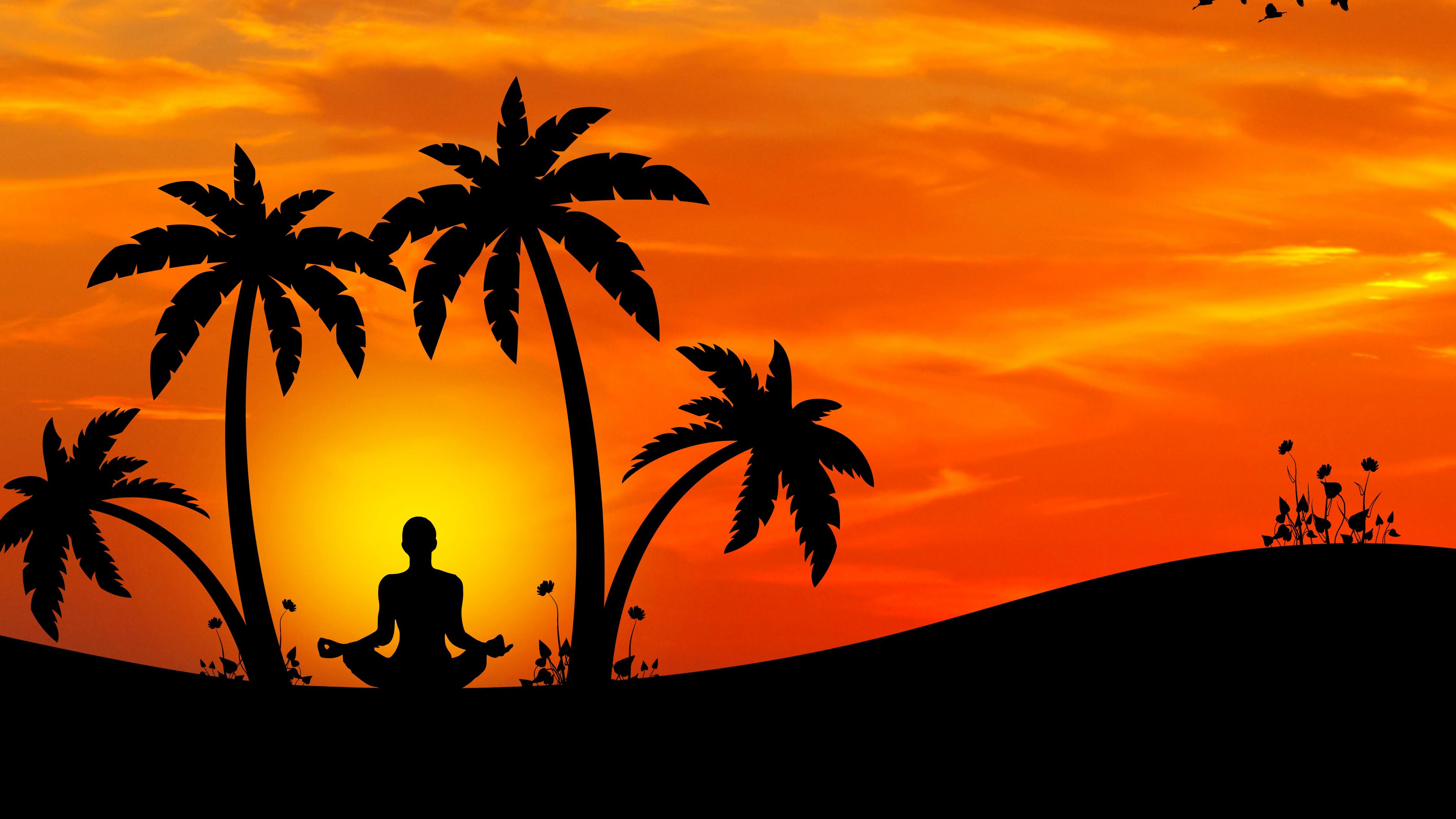 Meditation yoga silhouette 4k wallpaper
