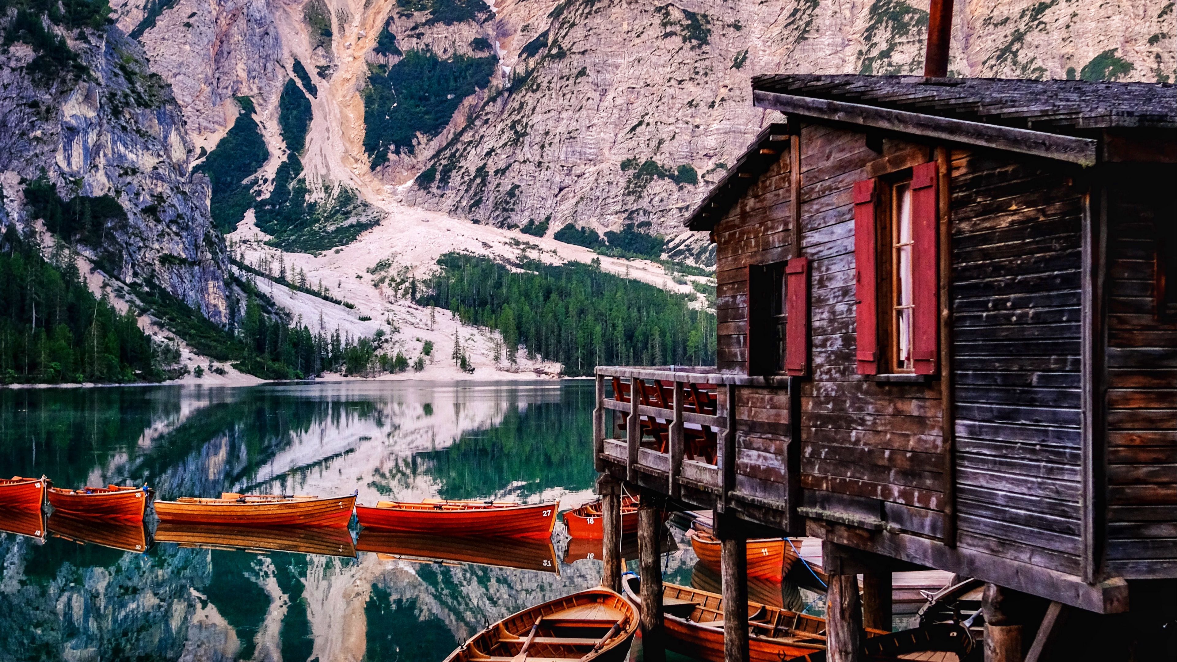 Mountains lake boats image 4k wallpaper