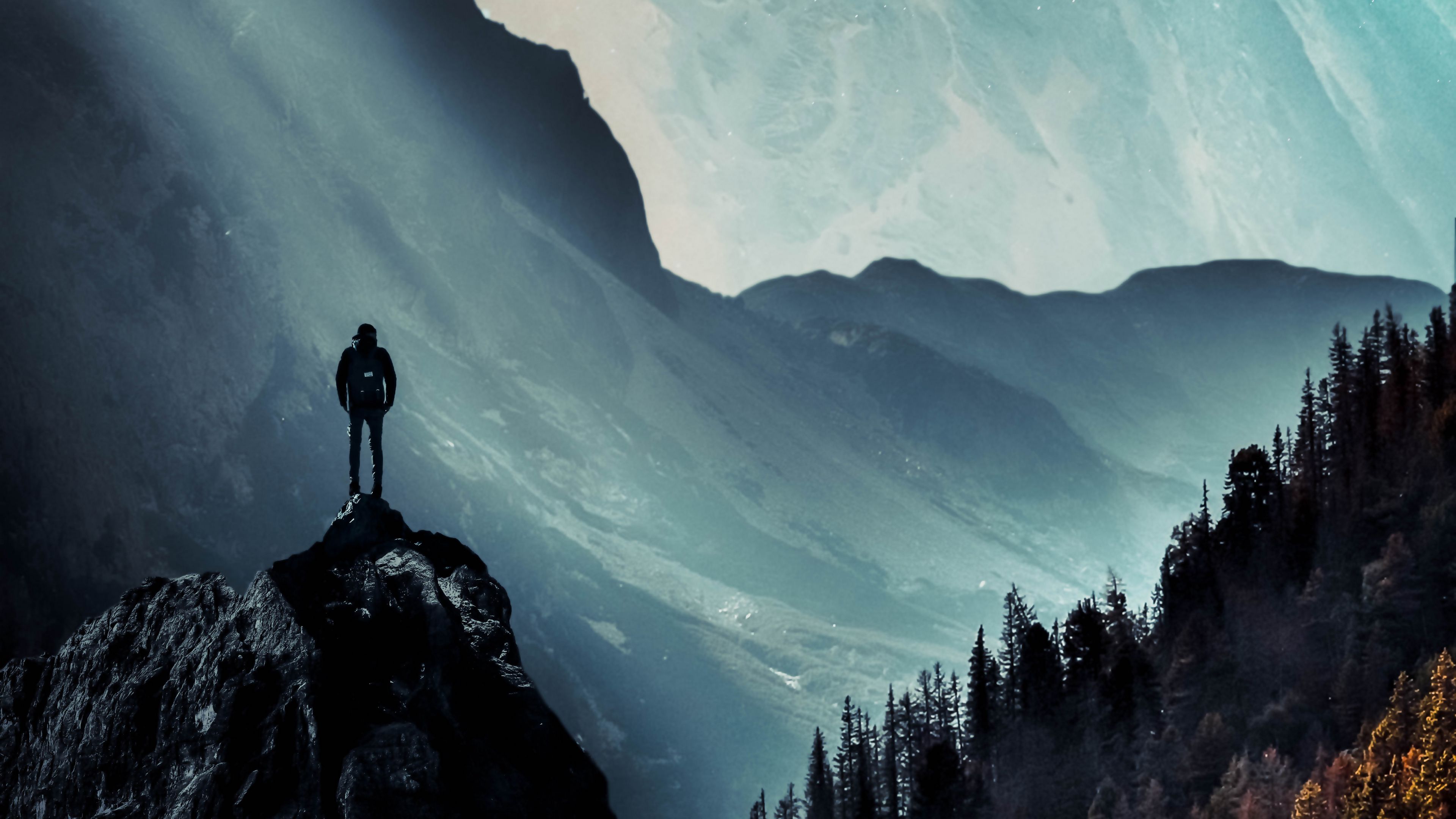 Mountains man alone 4k wallpaper Description :