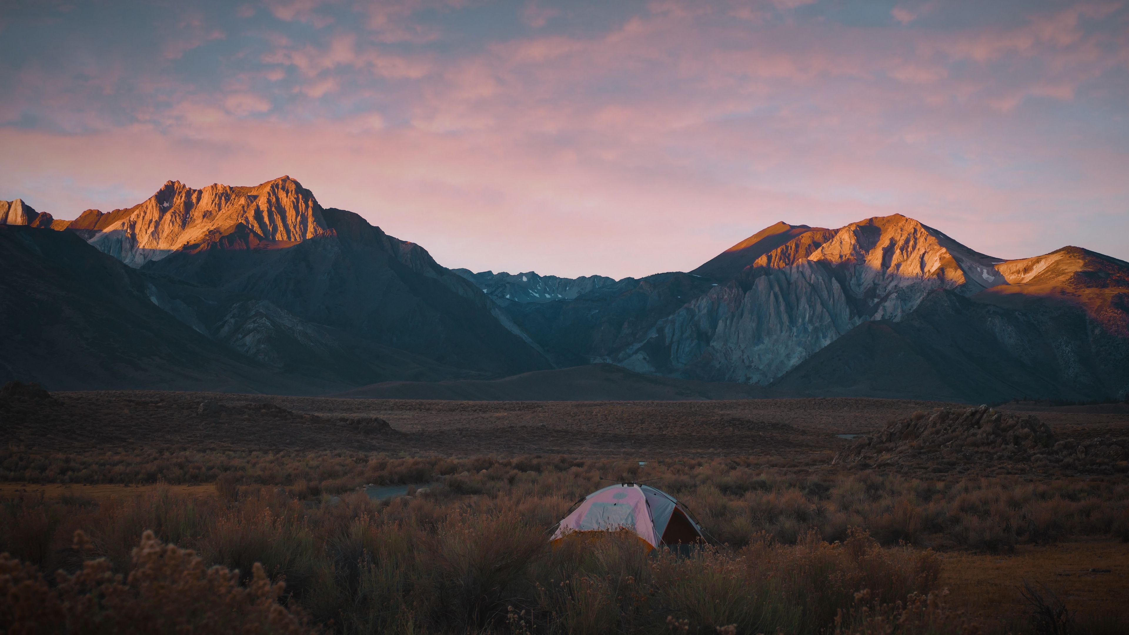 Mountains tent camping 4k wallpaper