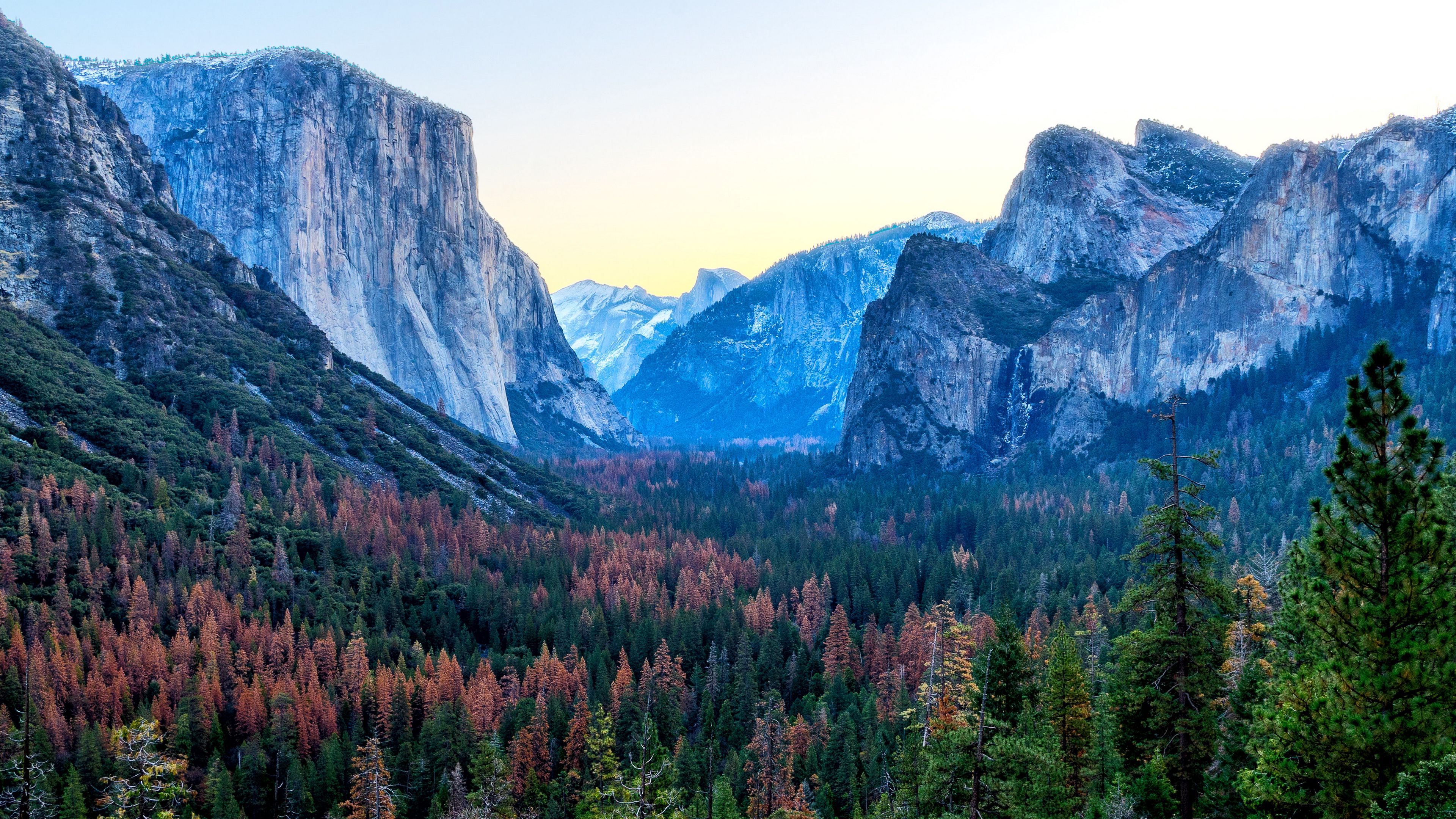 Mountains trees distance sky 4k wallpaper Description :