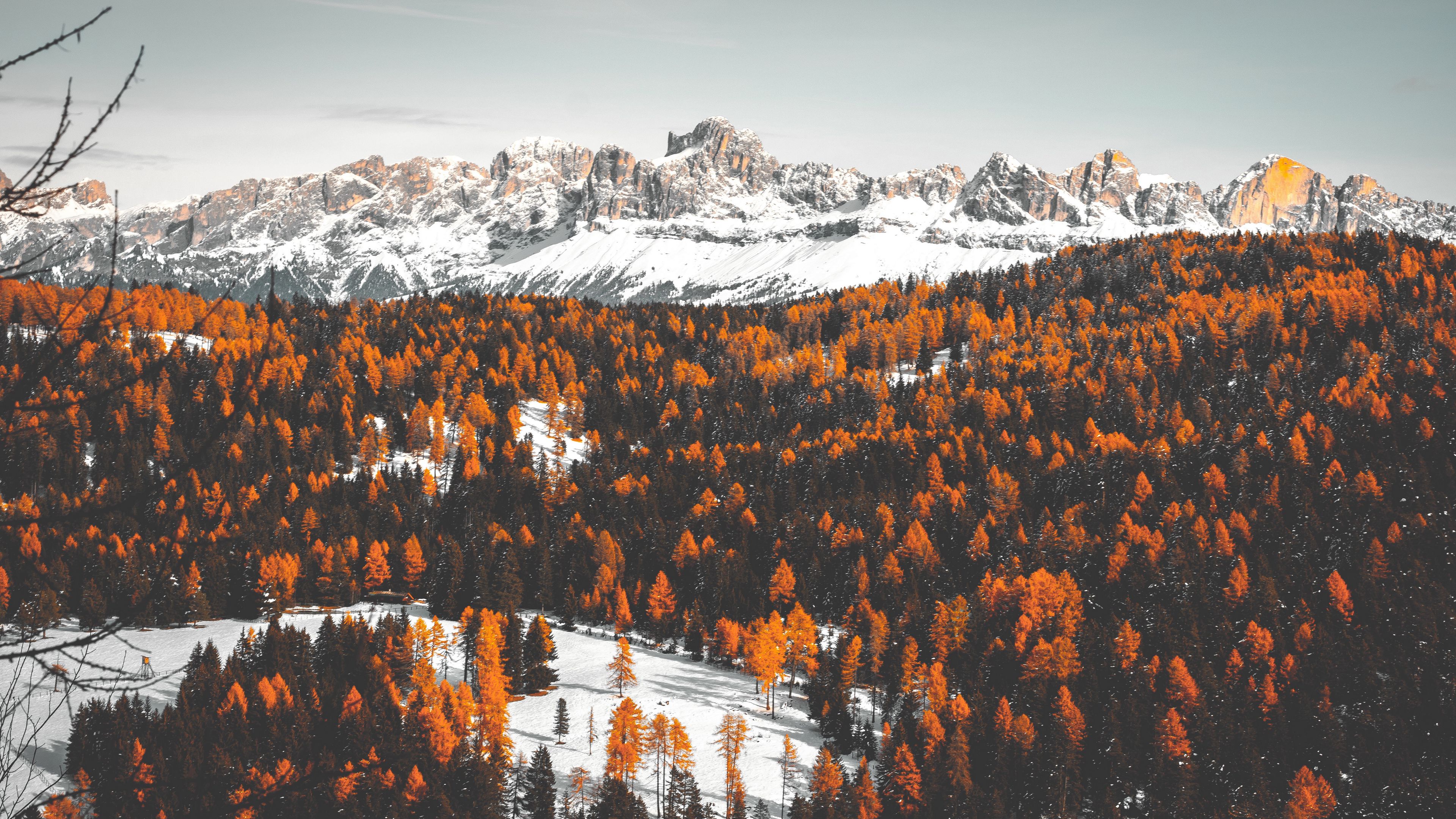 Mountains trees snow winter 4k wallpaper Description :