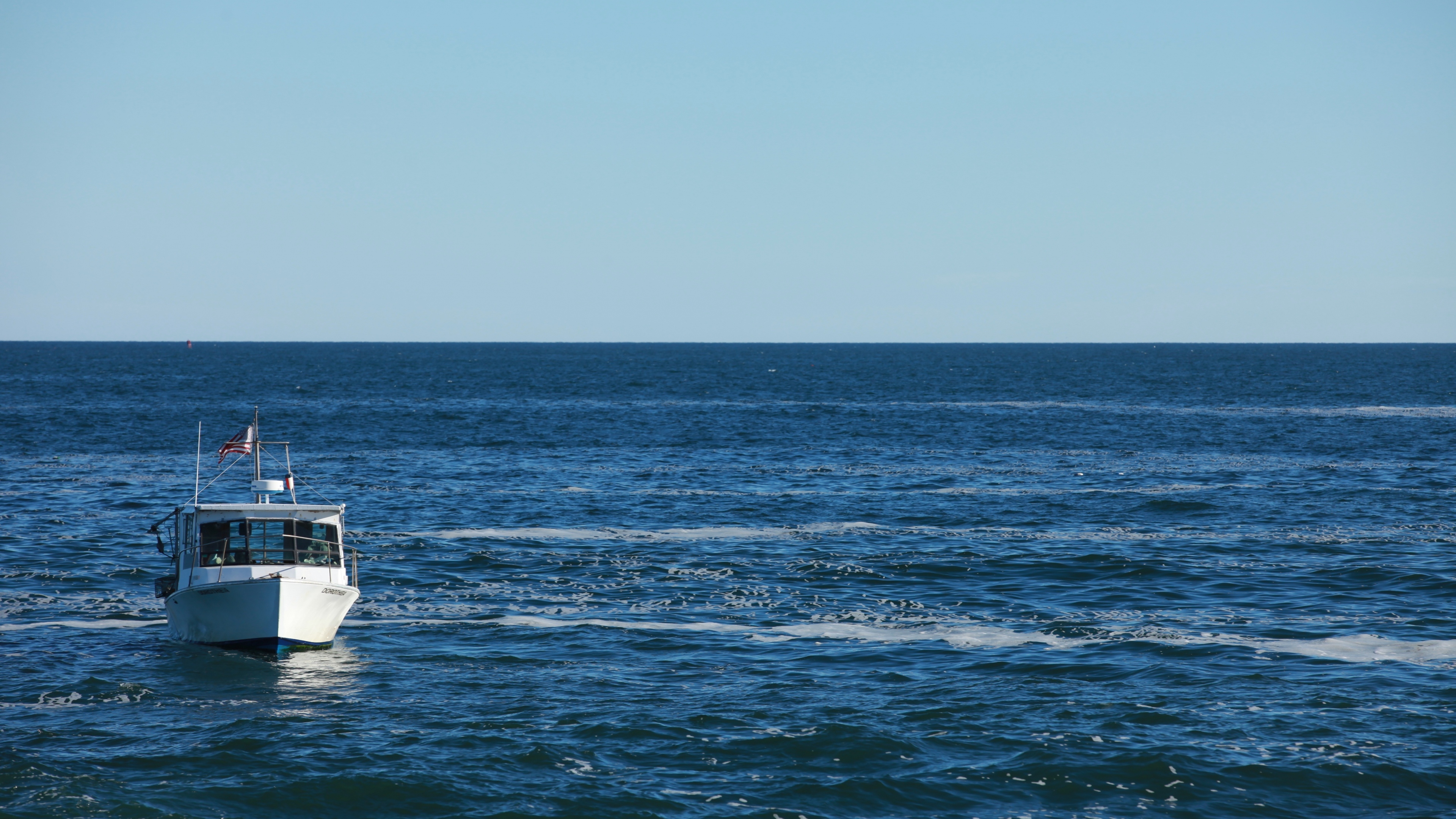 Ocean boat waves horizon 4k wallpaper Description :