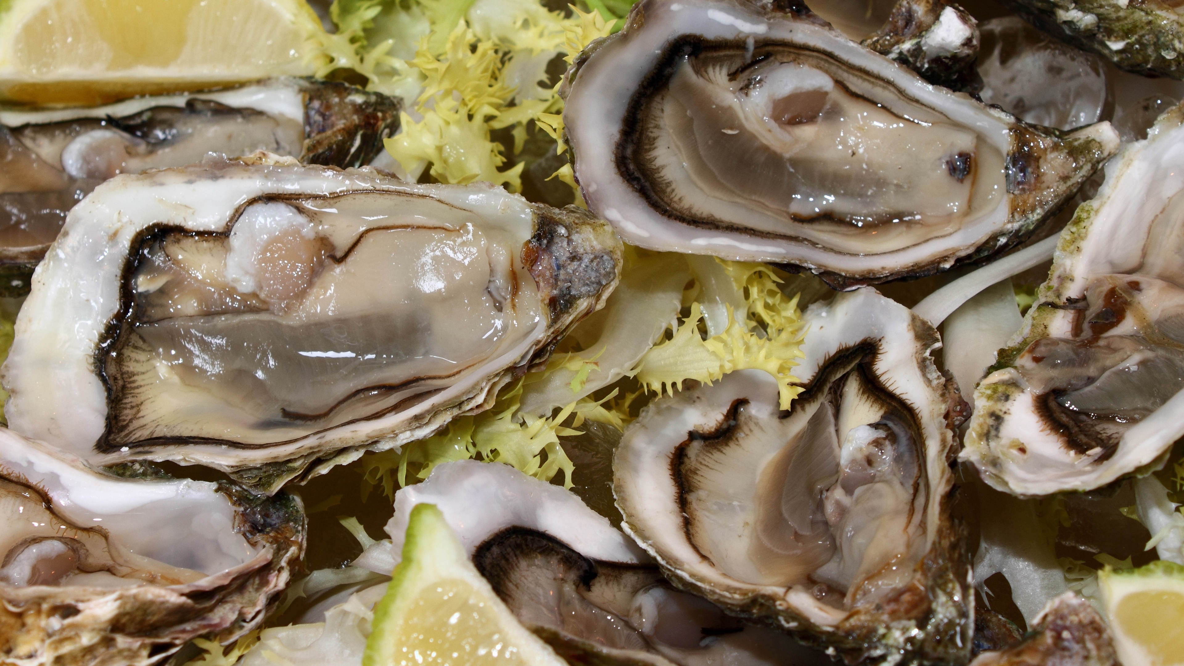 Oysters lemon herbs 4k wallpaper
