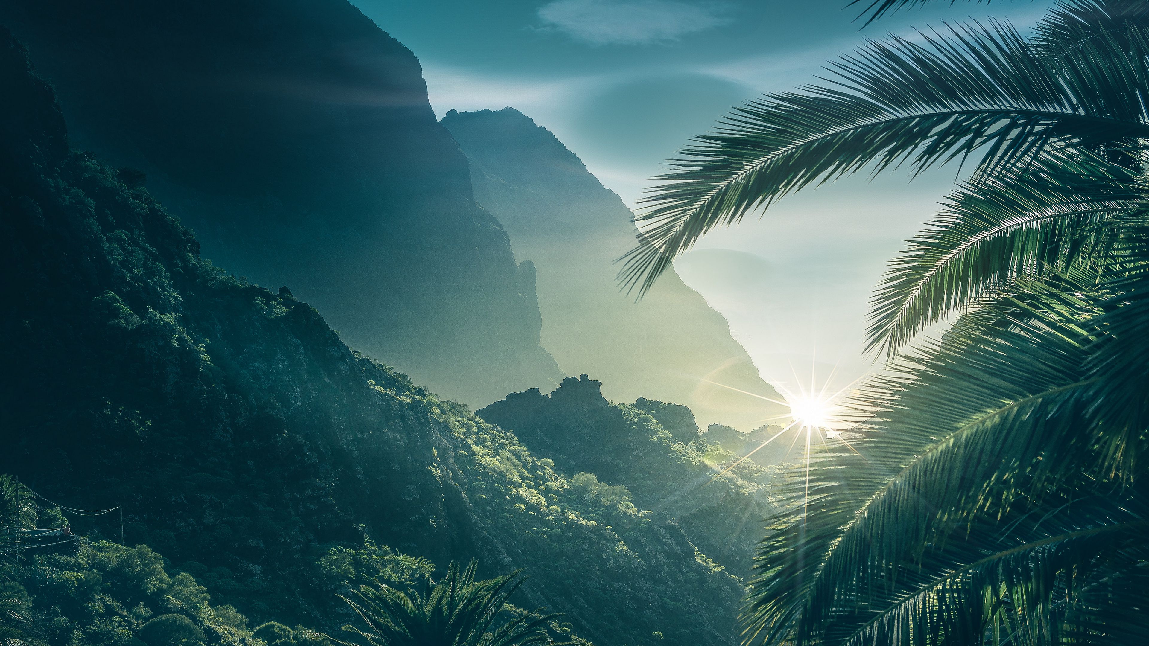 Download Palms mountains sunlight 4k wallpaper from the above resolution from the directory Nature. And don't miss to check all from this kind of lovely popular desktop background, by viewing the similar ultra high definition wallpapers at HOME.