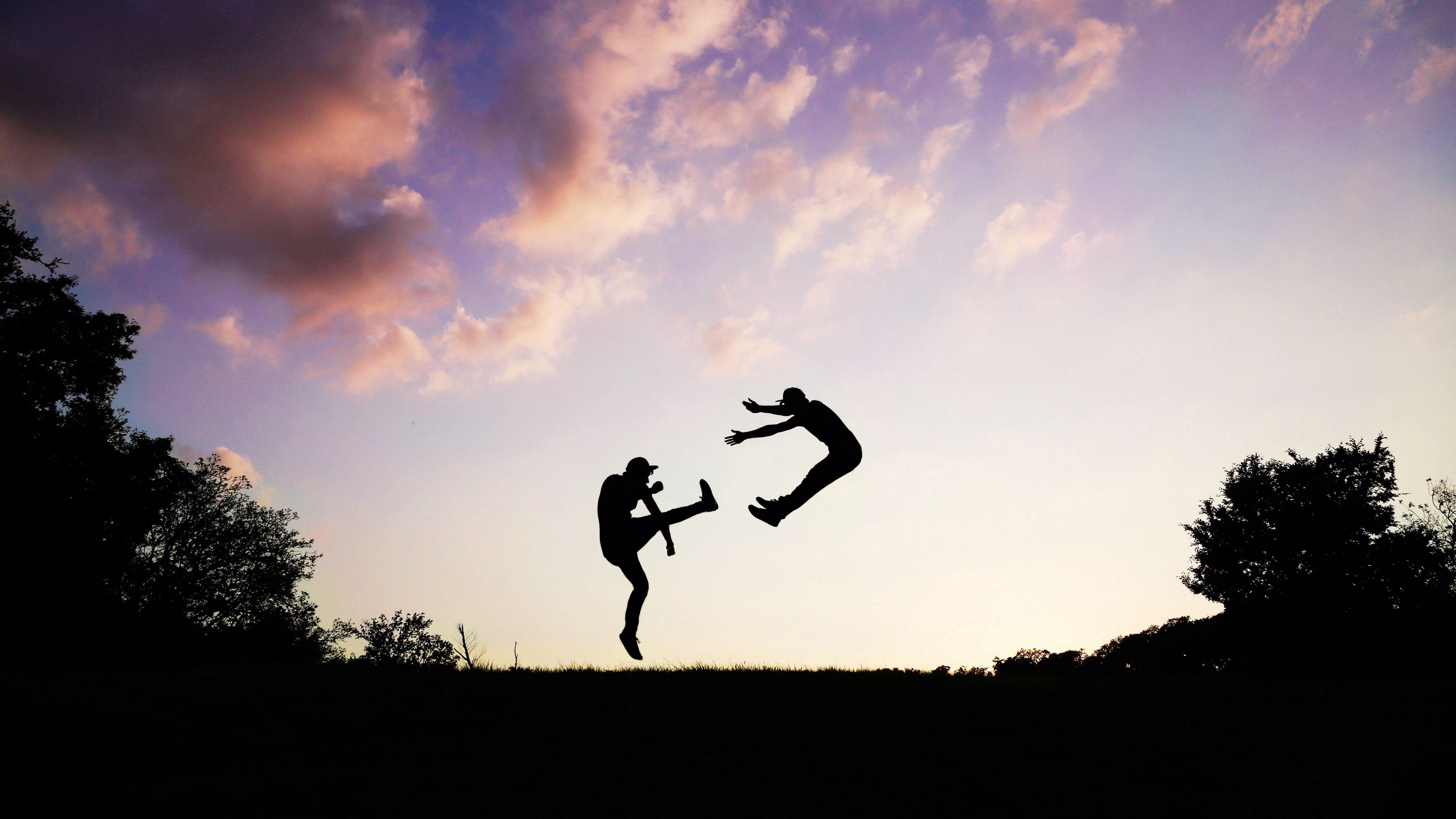 People silhouette jump 4k wallpaper