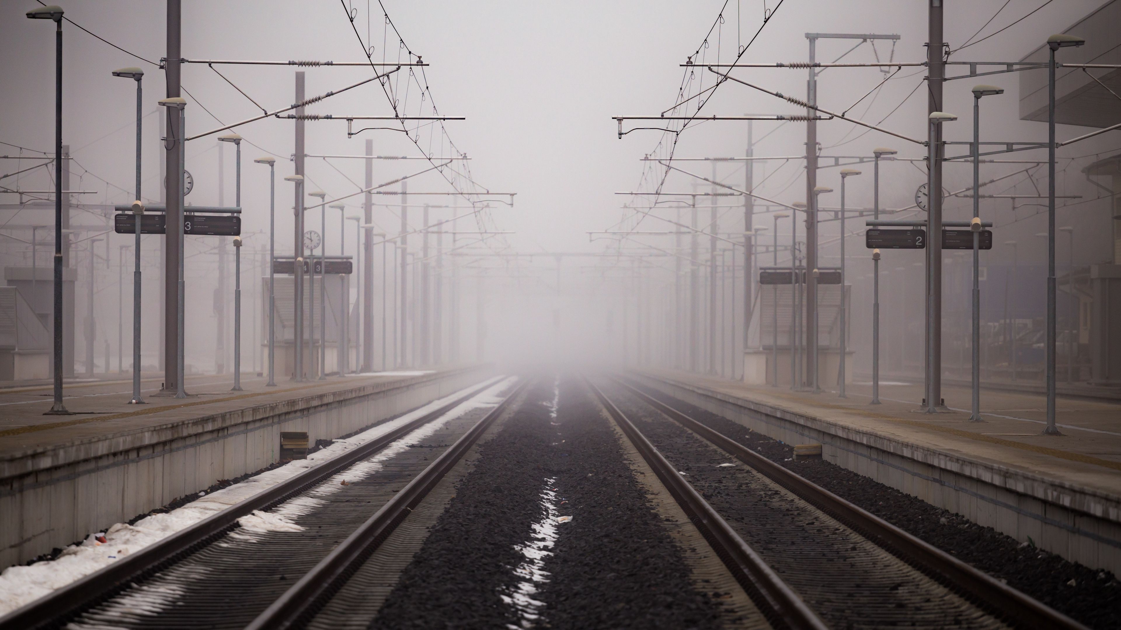 Railway fog wires 4k wallpaper Description :
