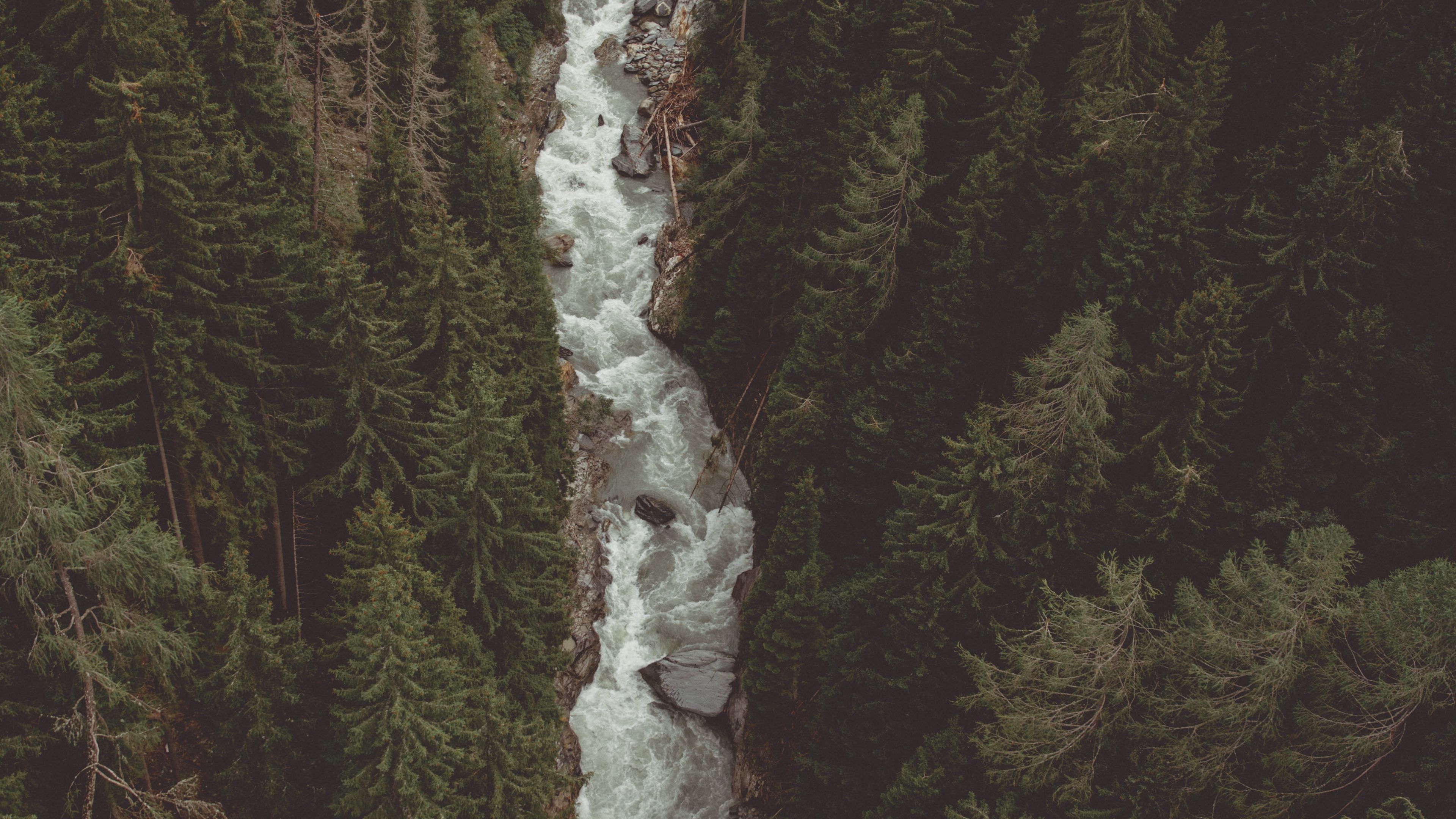 River forest aerial view 4k wallpaper
