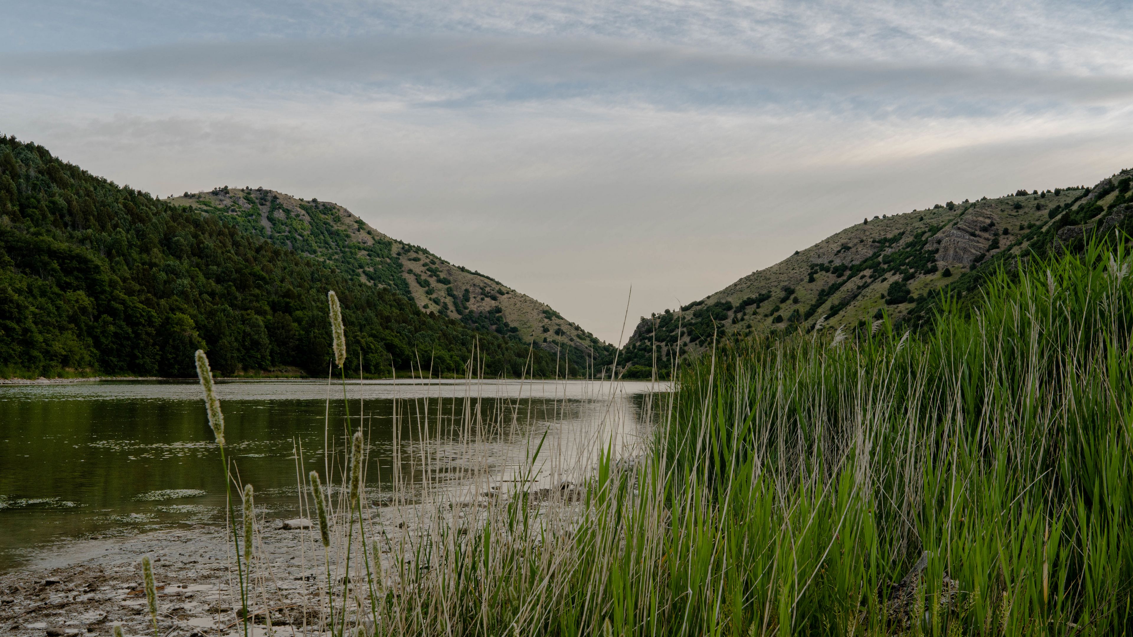 River grass hills 4k wallpaper