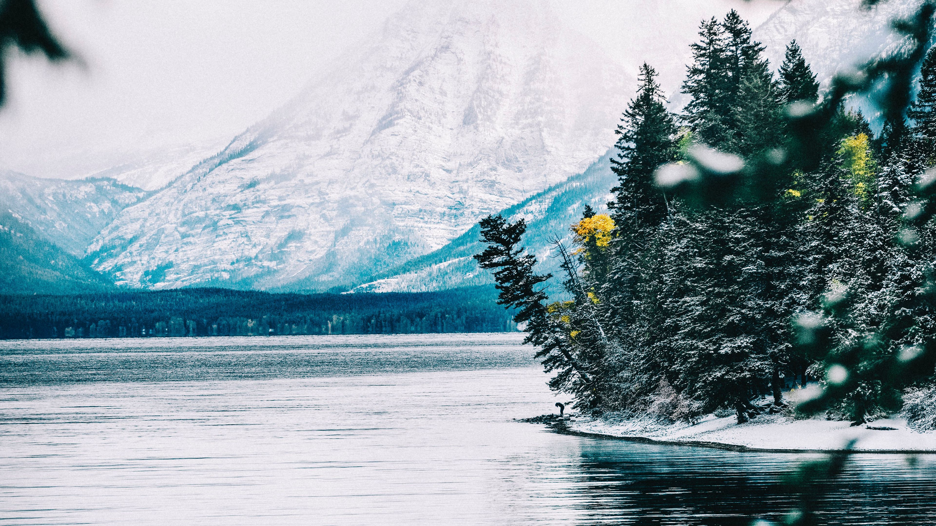 River mountain snow 4k wallpaper