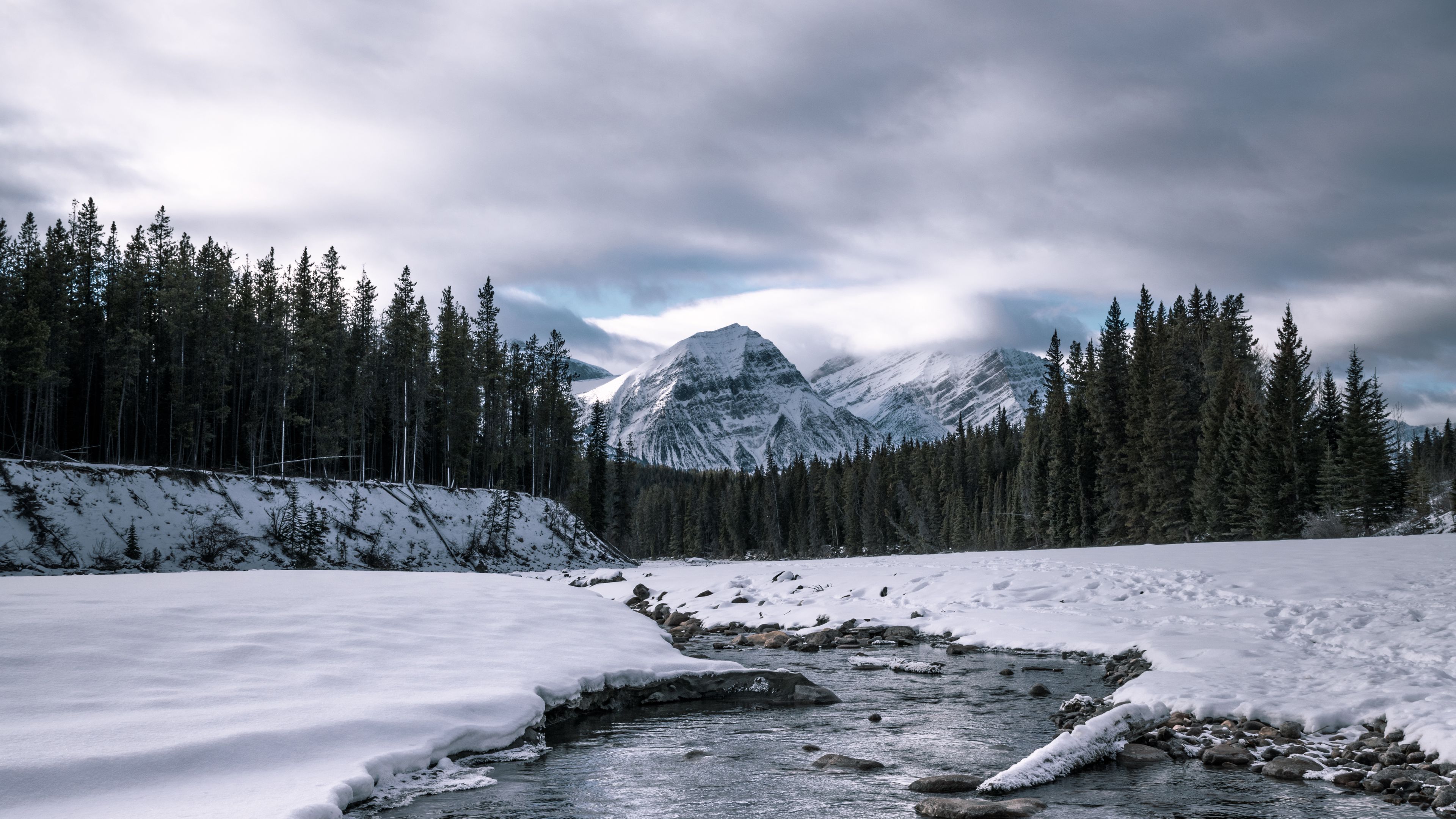 River mountains forest image 4k wallpaper