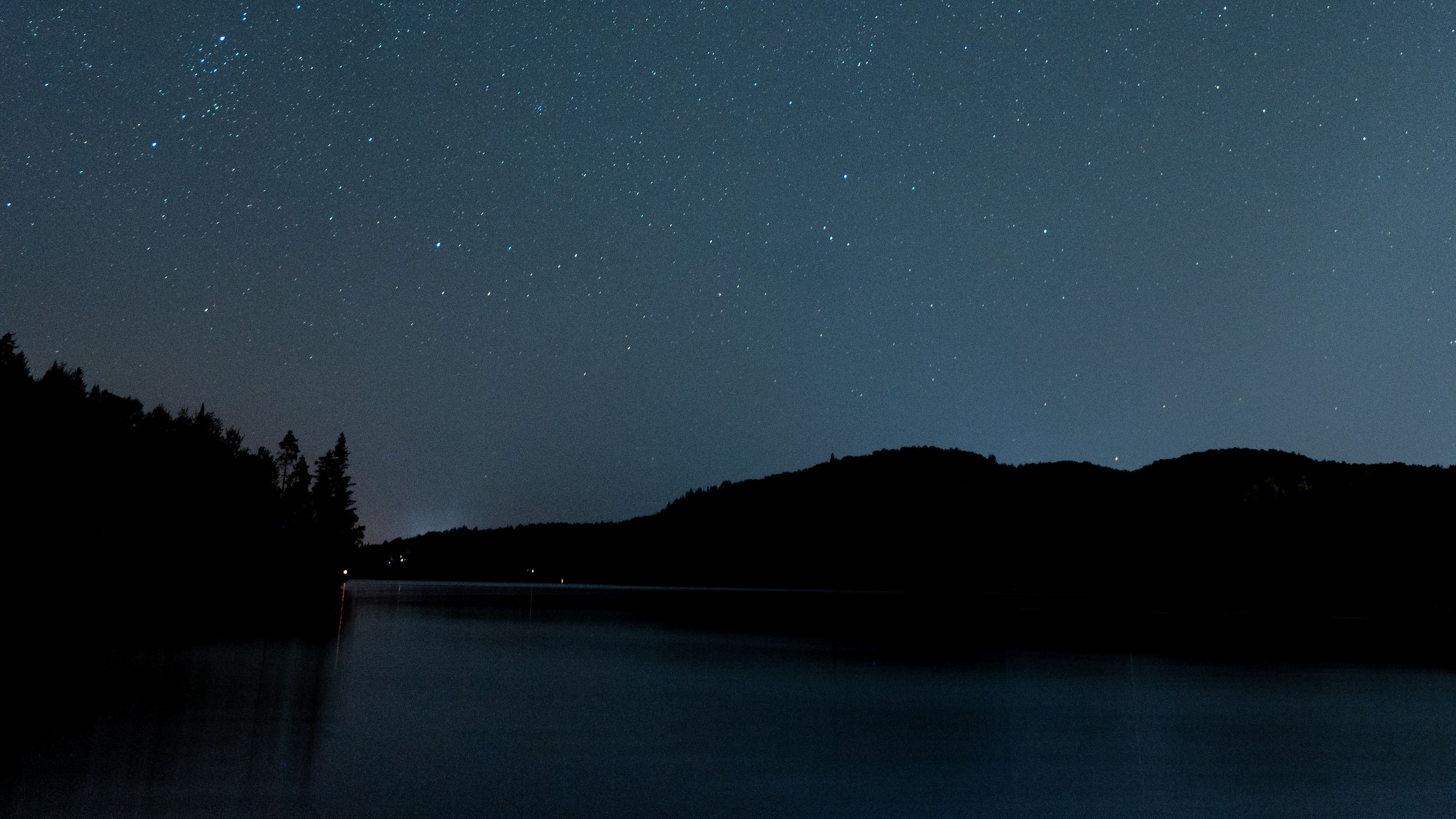 River shore starry sky 4k wallpaper Description :