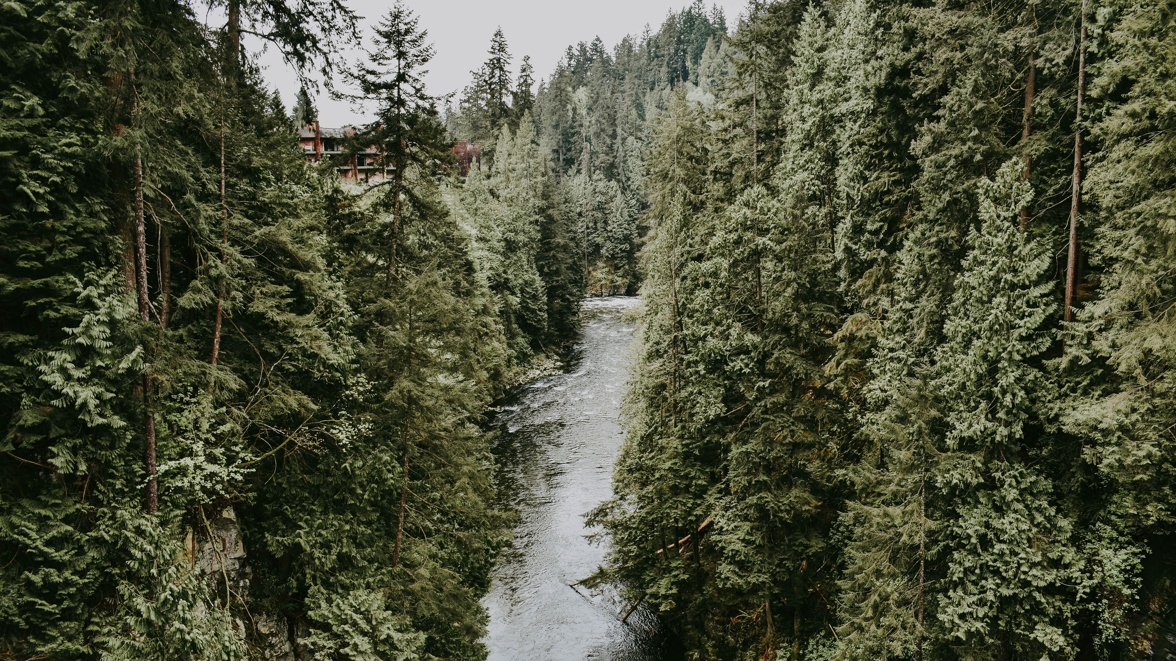 River stream trees 4k wallpaper