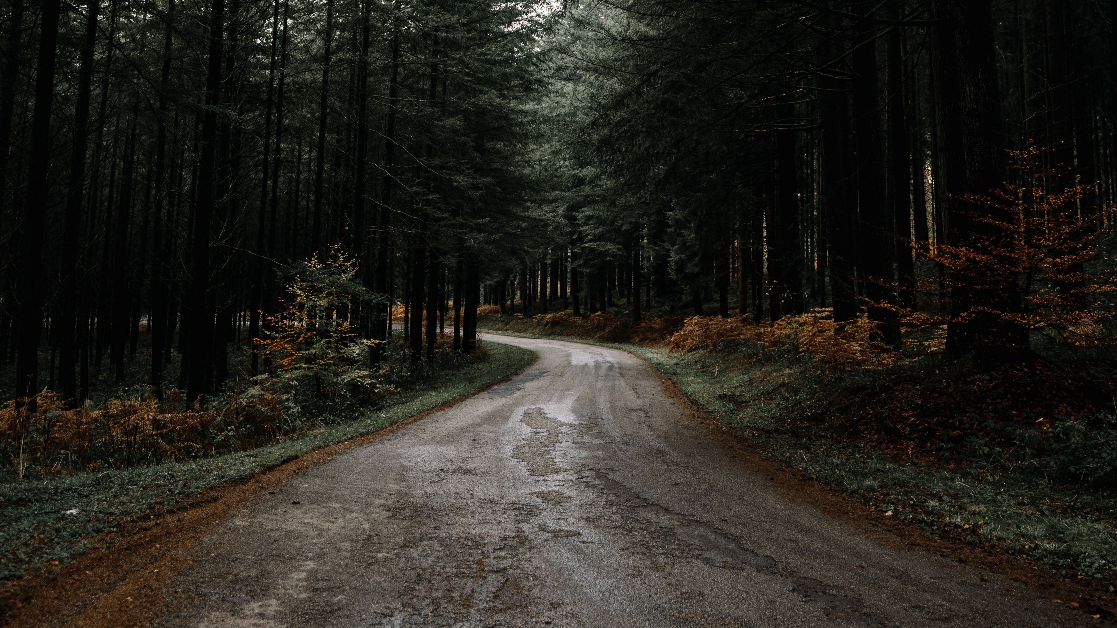 Road forest pines 4k wallpaper Description :