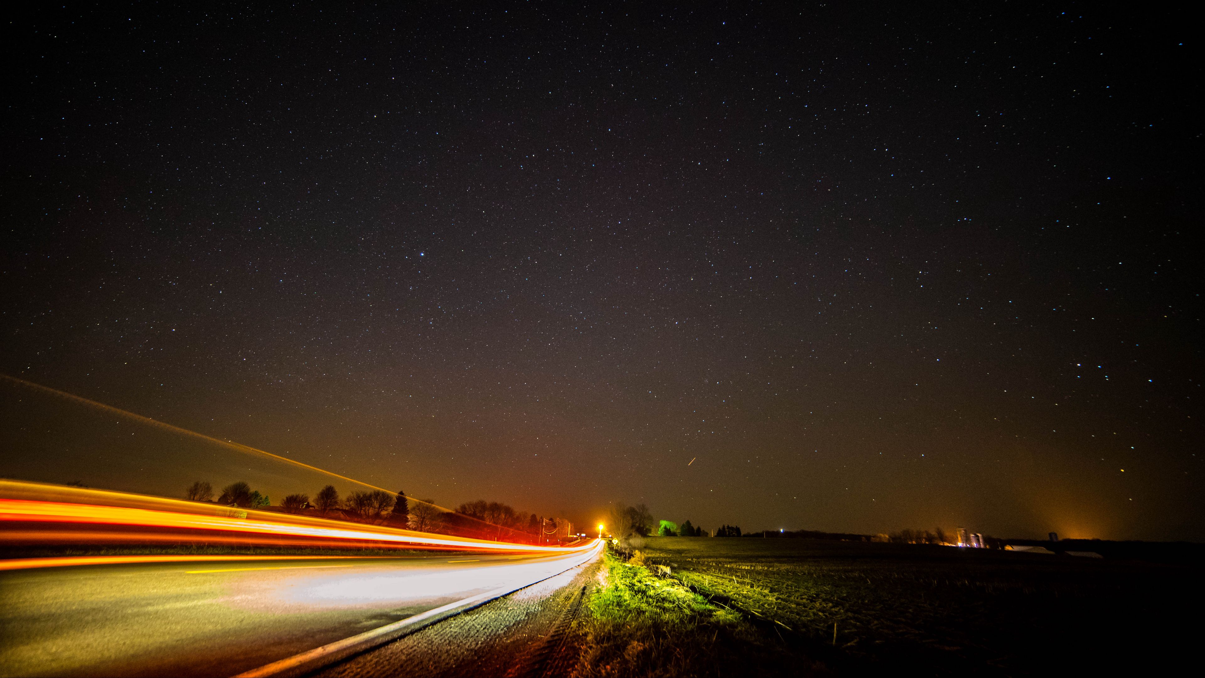 Download Road long exposure starry sky 4k wallpaper from the above resolution from the directory Dark. And don't miss to check all from this kind of lovely popular desktop background, by viewing the similar ultra high definition wallpapers at HOME.