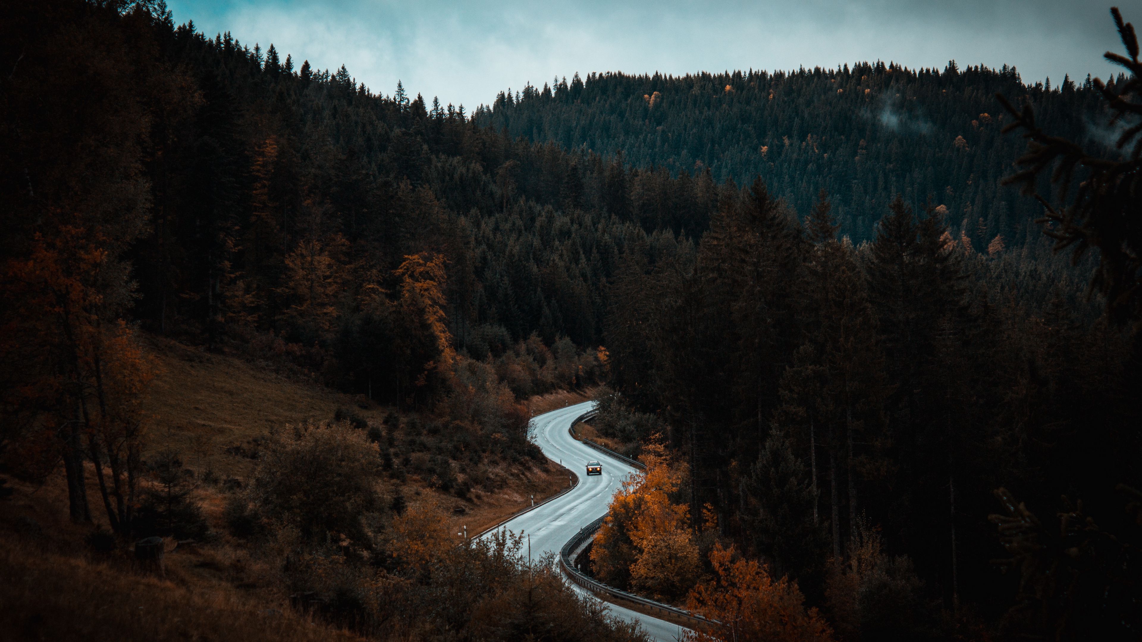 Road winding forest 4k wallpaper Description :