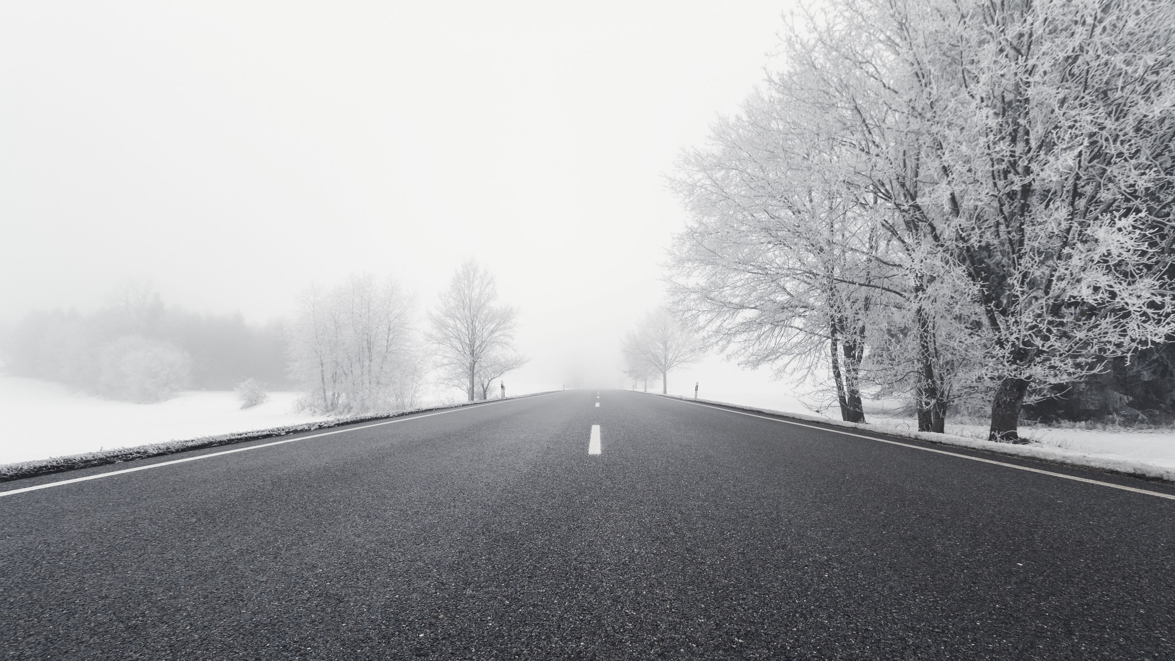 Road winter bw 4k wallpaper