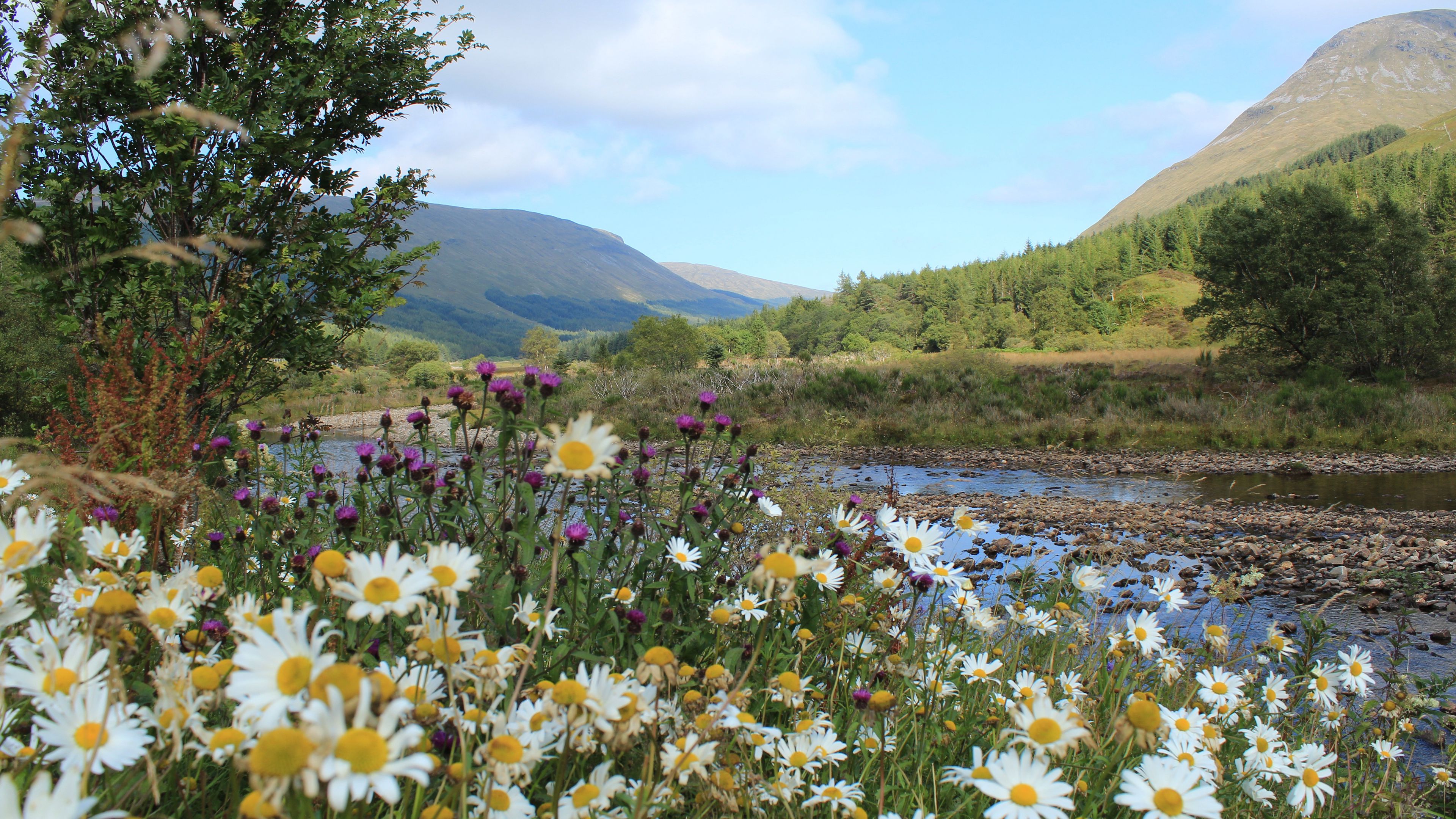 Download Scotland mountain river grass daisies 4k wallpaper from the above resolution from the directory Flowers. And don't miss to check all from this kind of lovely popular desktop background, by viewing the similar ultra high definition wallpapers at HOME.