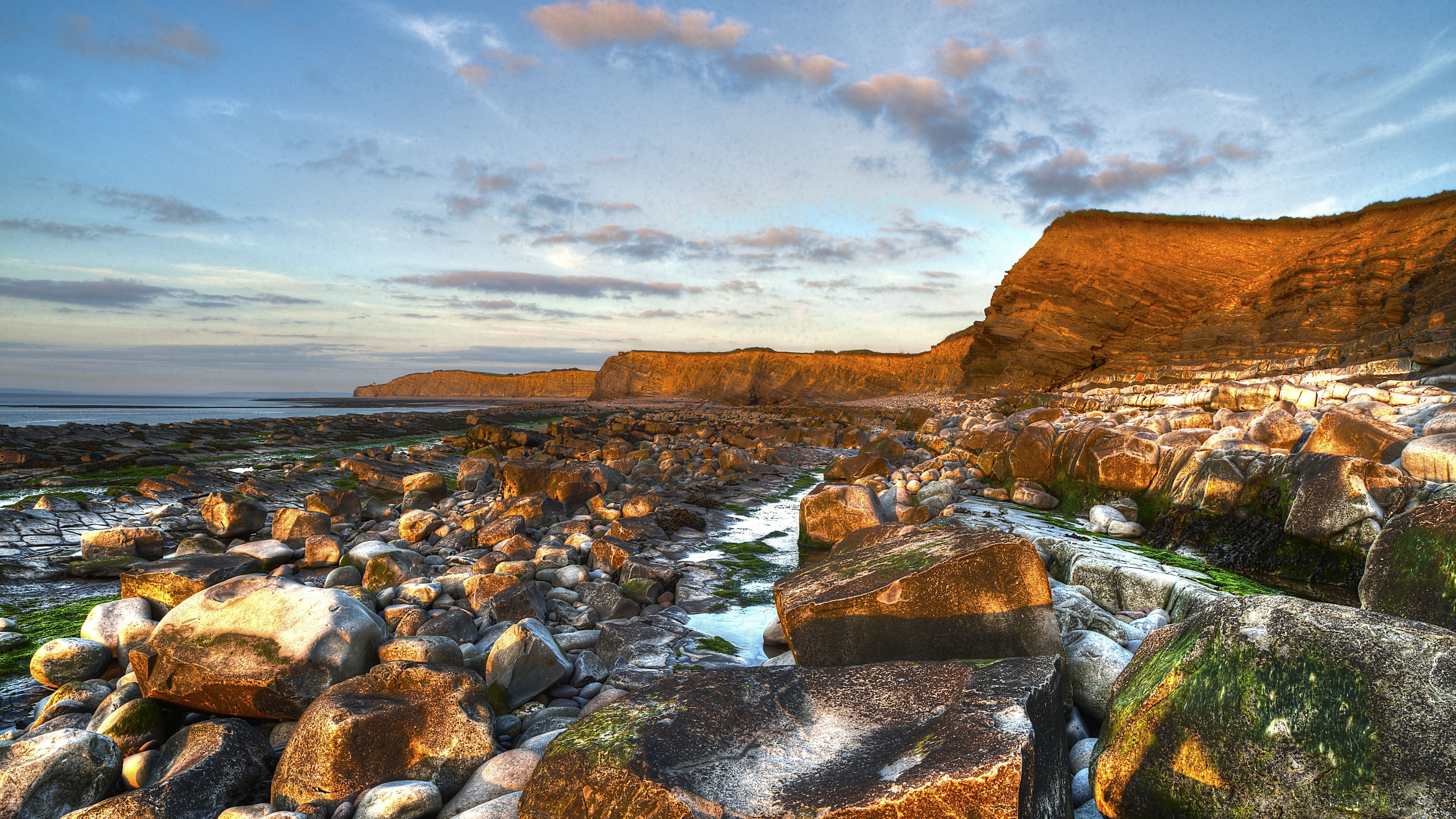 Sea beach rocks landscape 4k wallpaper