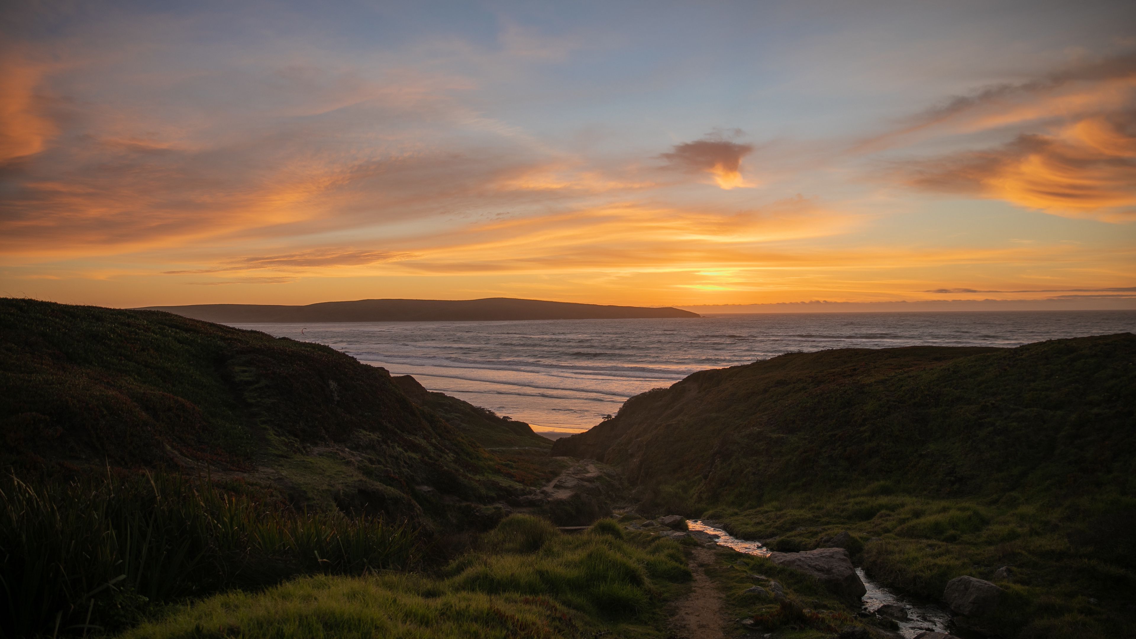 Sea coast sunset 4k wallpaper