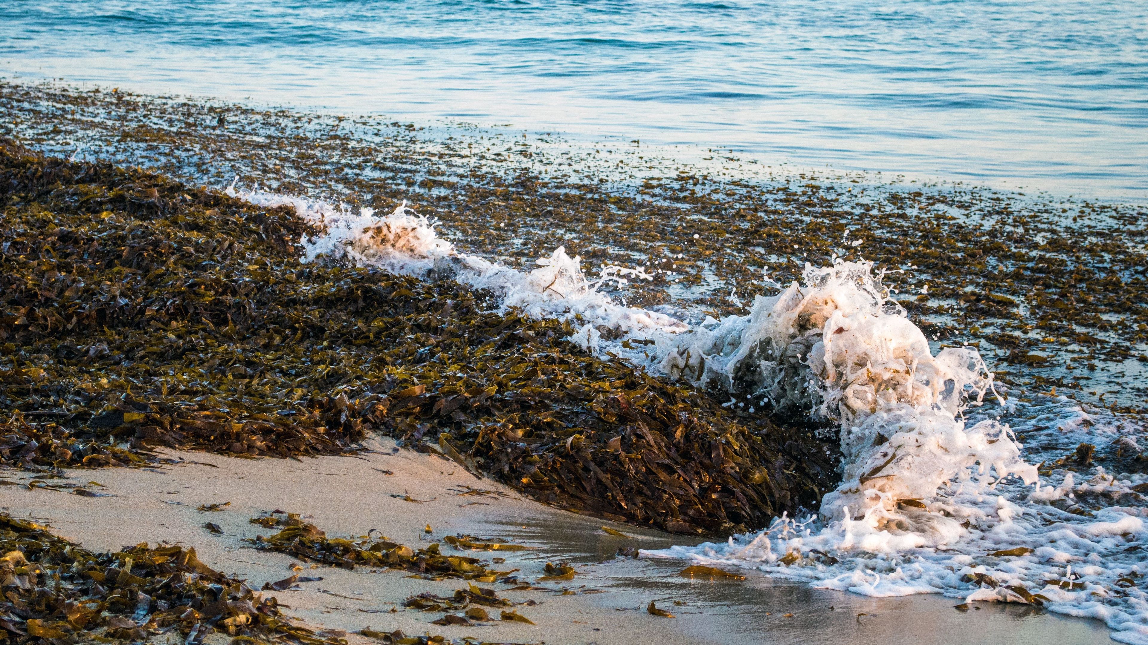 Sea foam seaweed landscap 4k wallpaper Description :