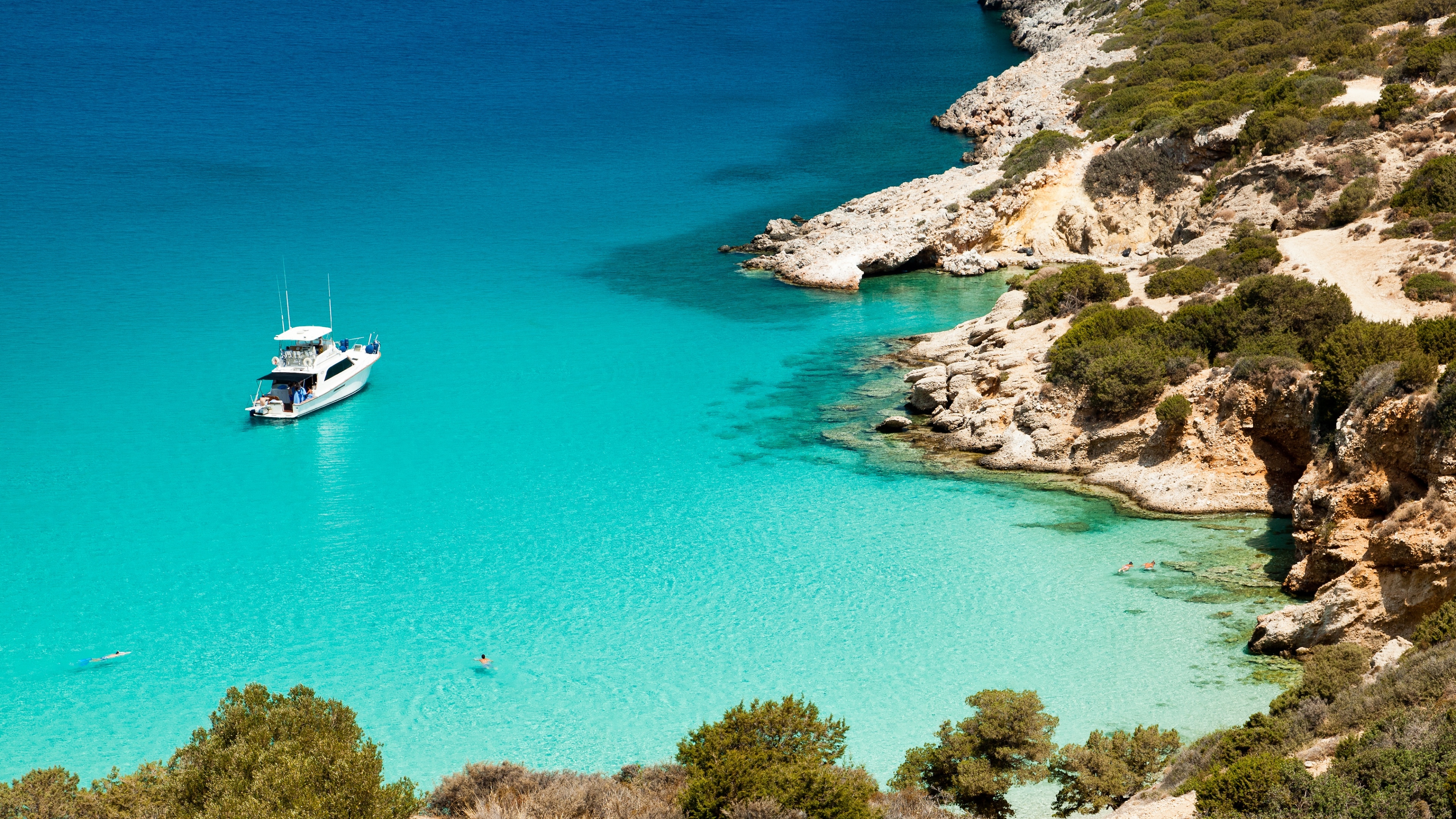 Sea rocks boat 4k wallpaper
