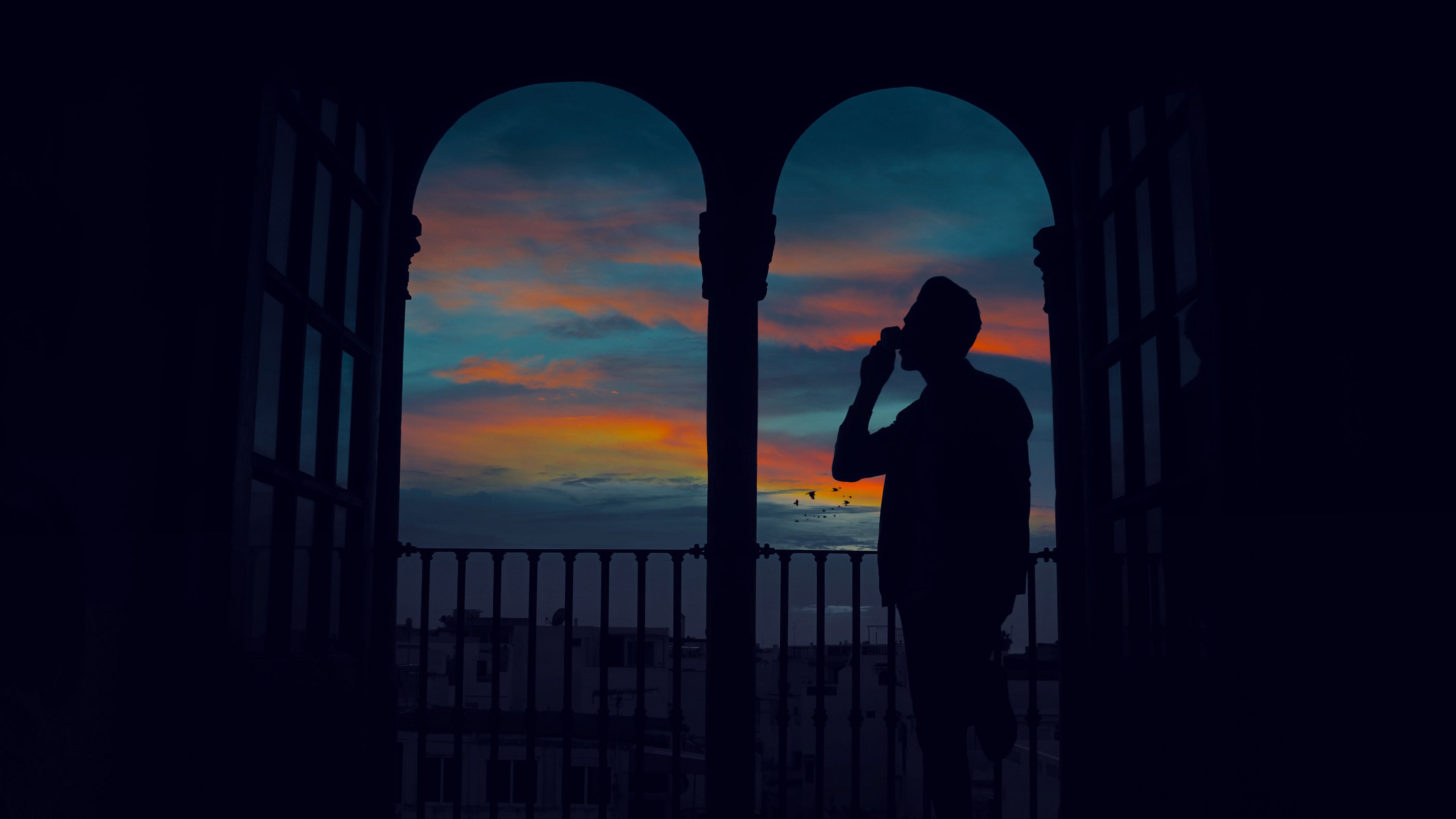 Silhouette arch twilight 4k wallpaper