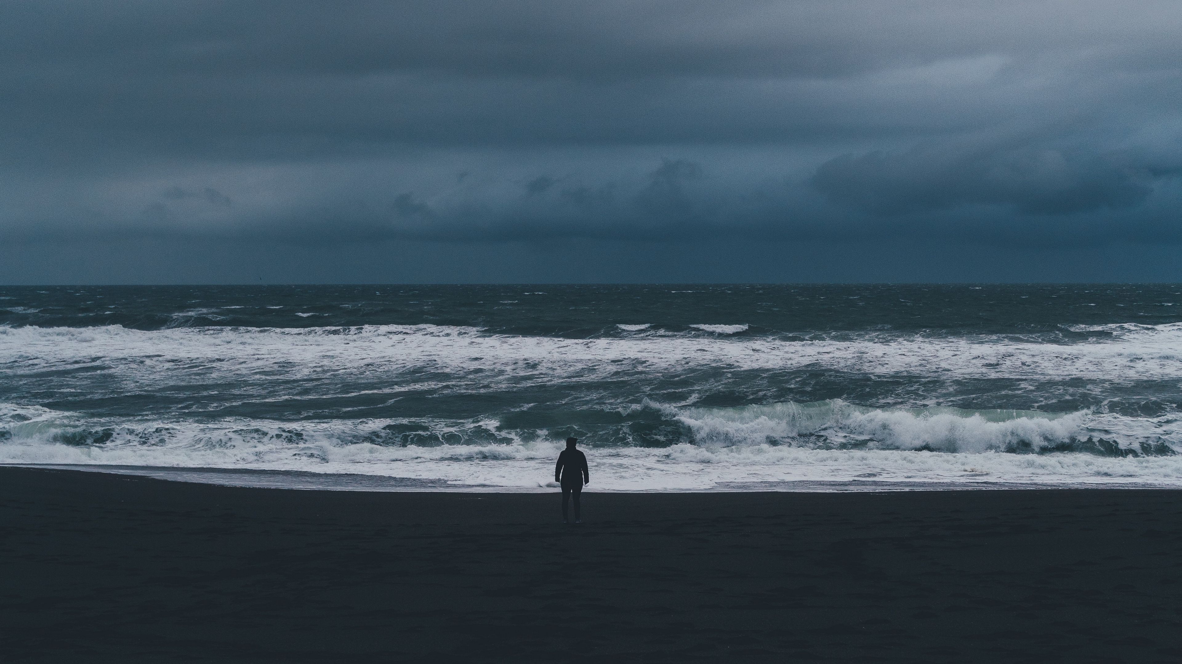 Silhouette sea storm 4k wallpaper Description :