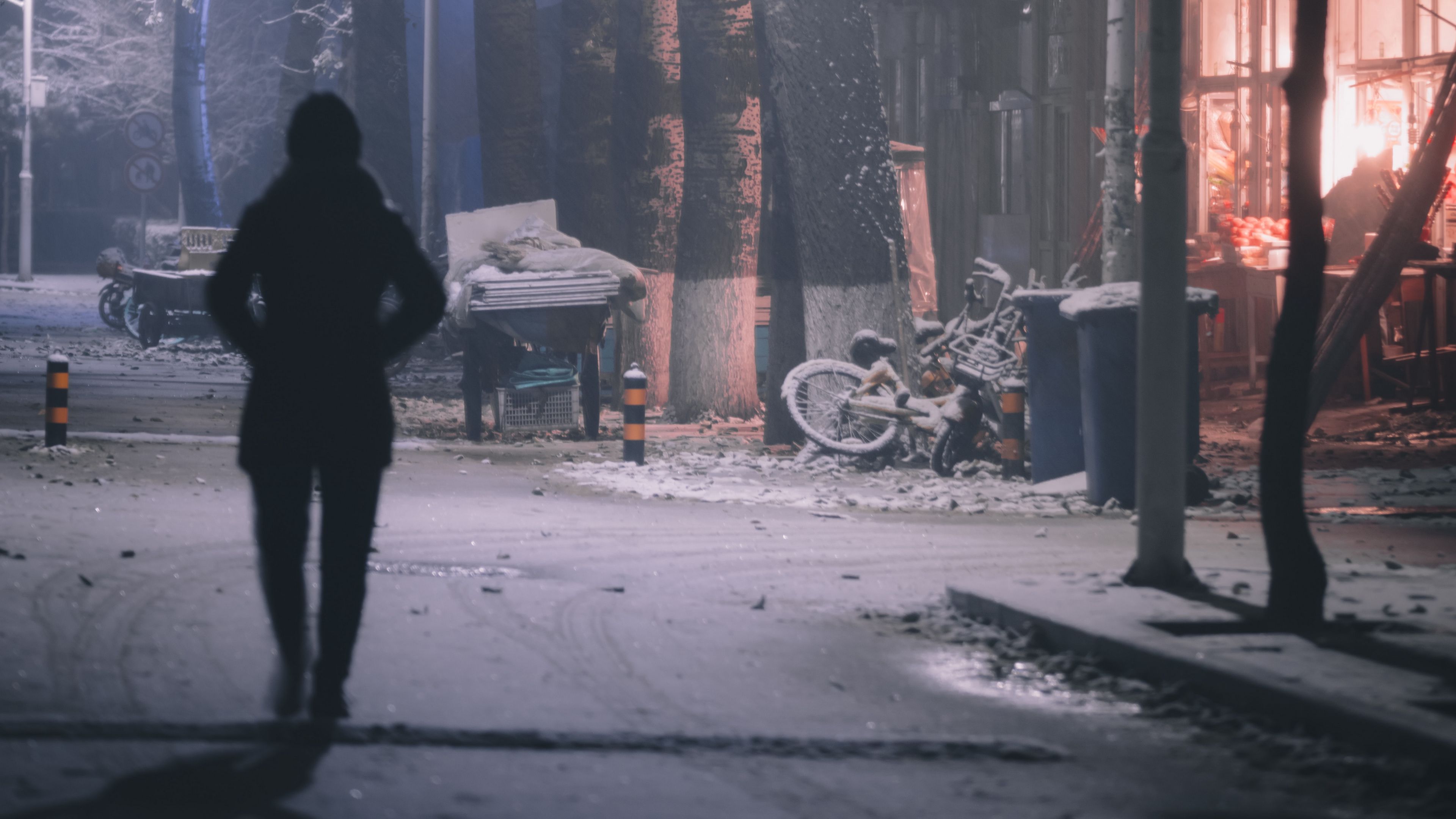 Silhouette street night 4k wallpaper Description :
