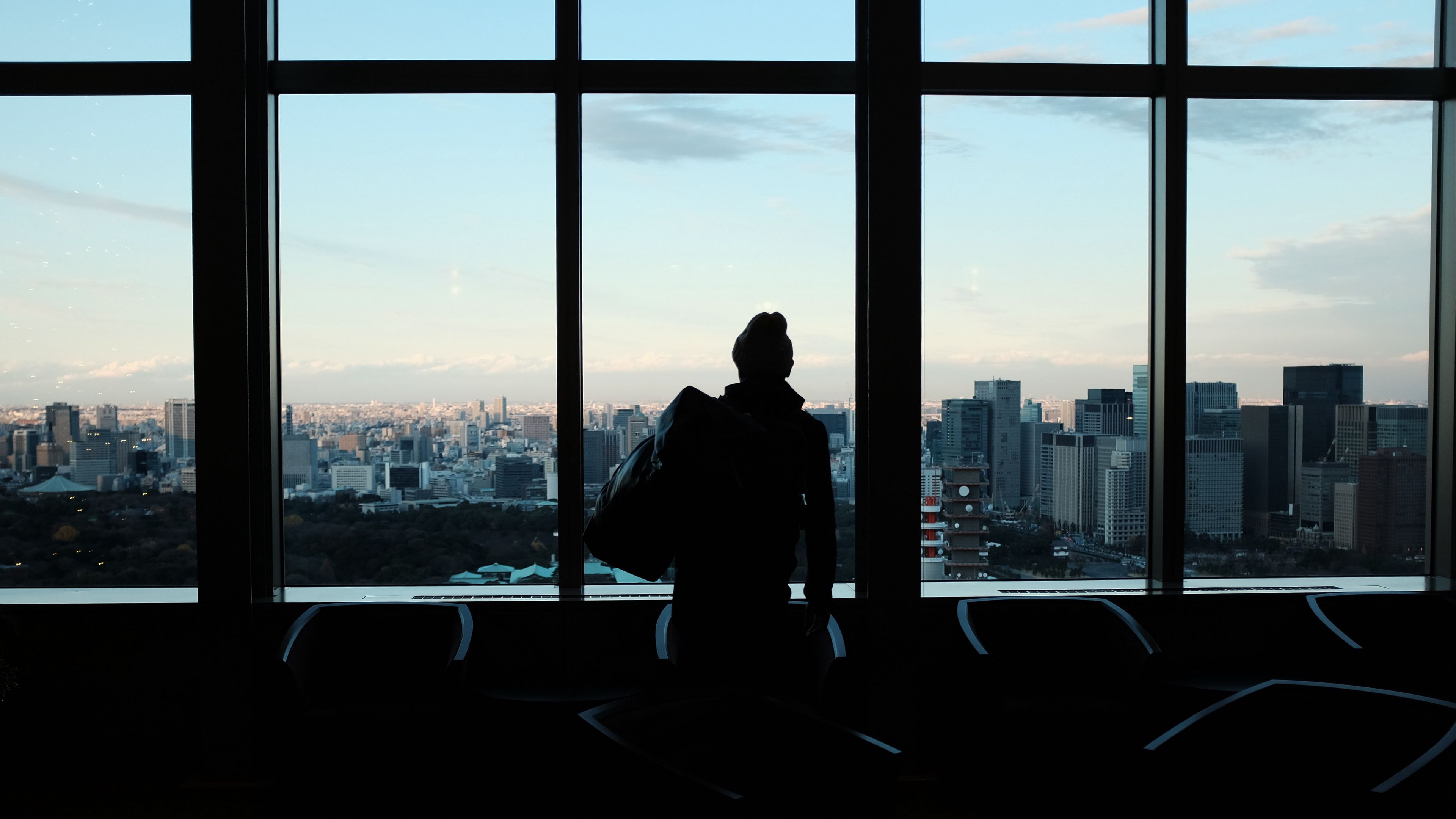 Silhouette window city 4k wallpaper