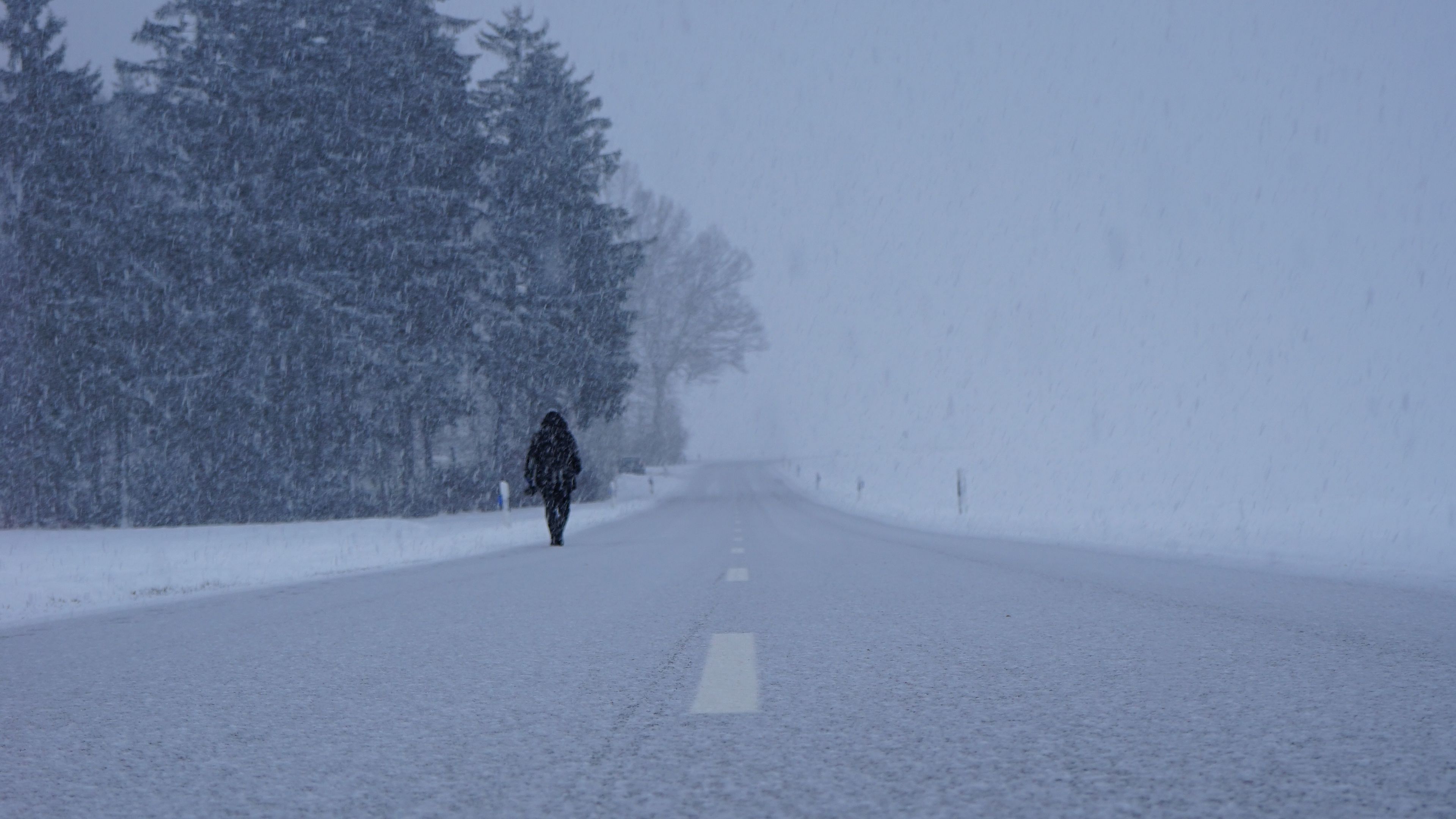 Silhouette winter fog 4k wallpaper Description :