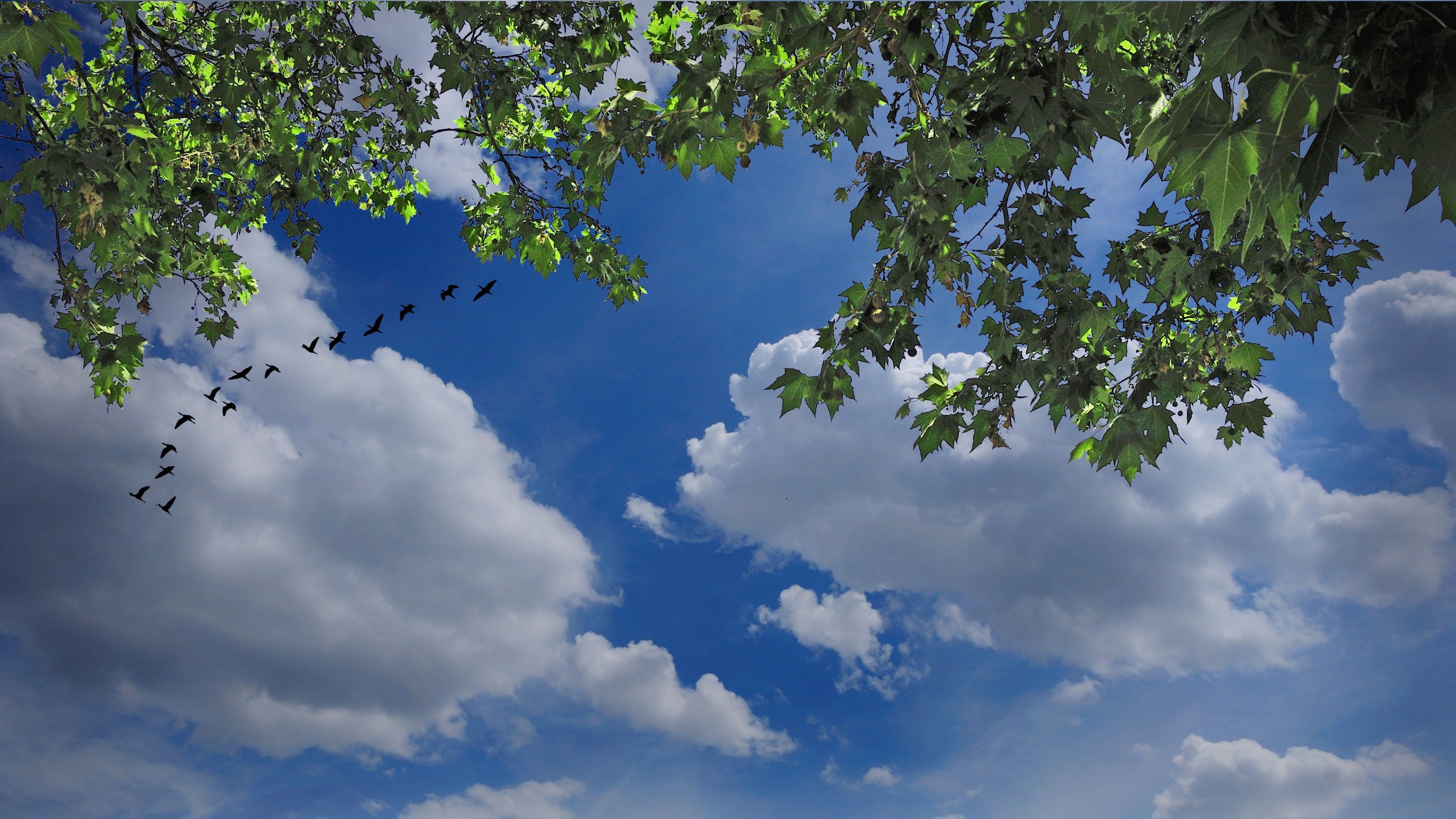 Download Sky birds clouds trees nature 4k wallpaper from the above resolution from the directory Nature. And don't miss to check all from this kind of lovely popular desktop background, by viewing the similar ultra high definition wallpapers at HOME.