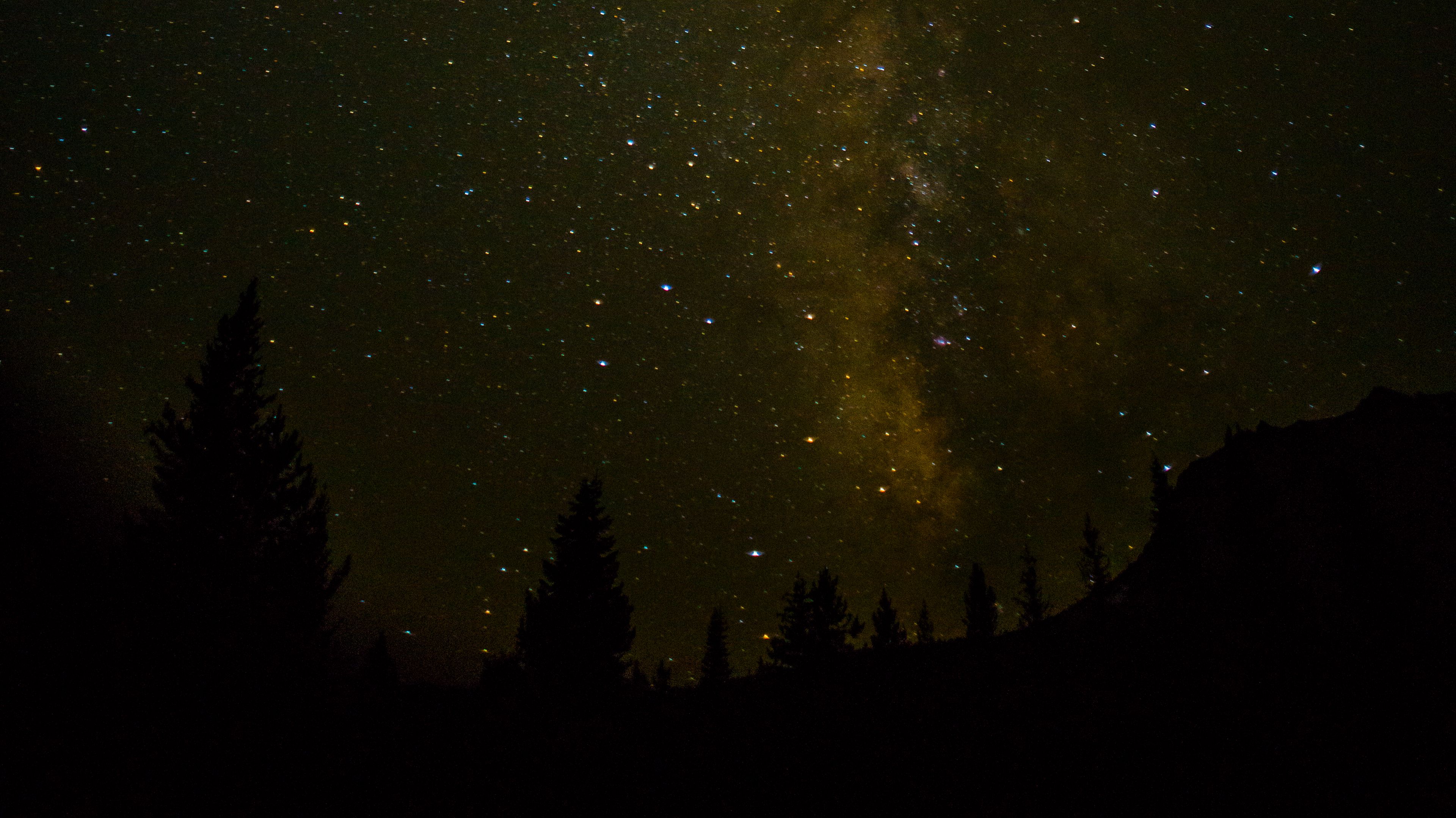 Space starry sky trees 4k wallpaper Description :