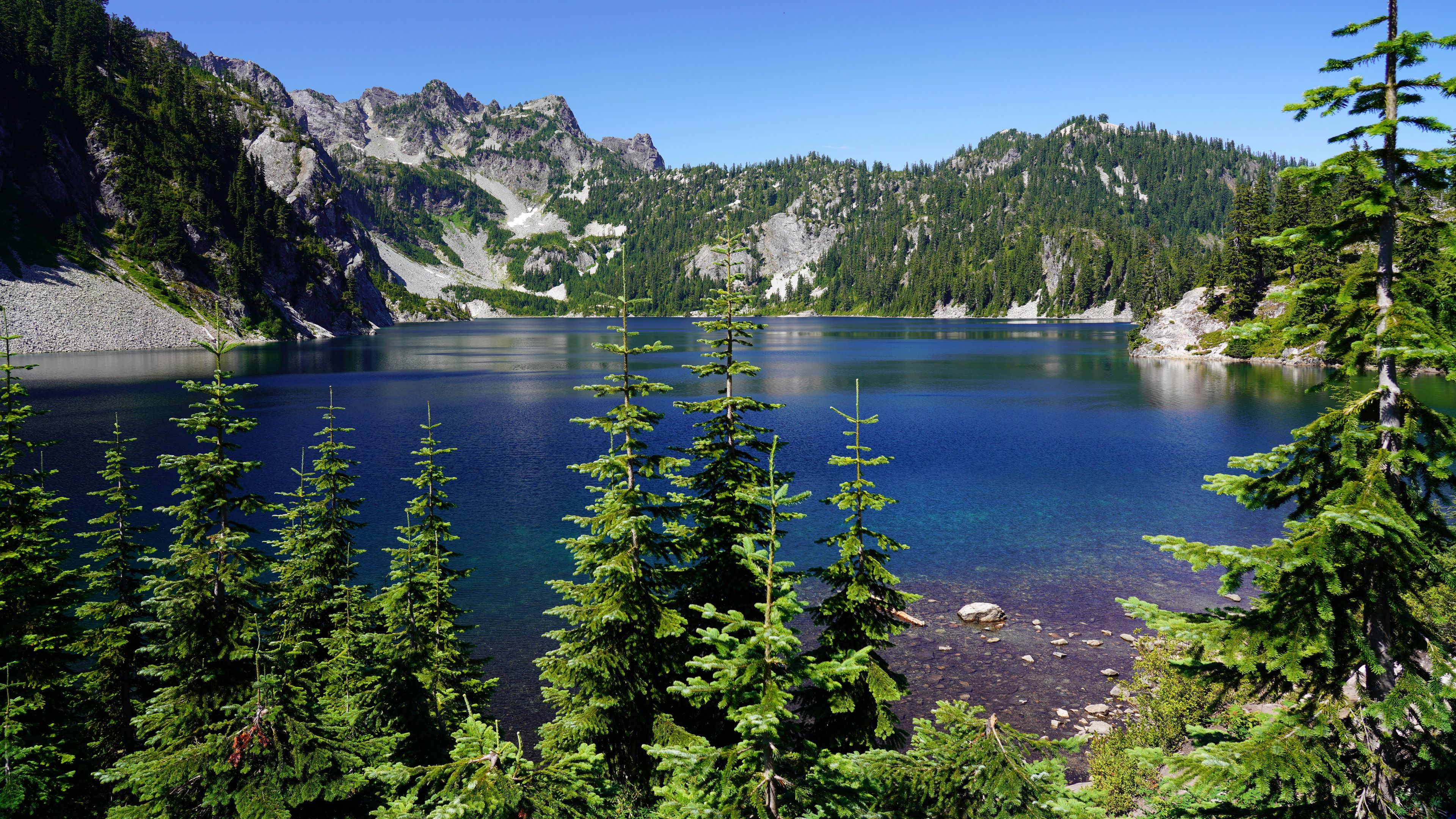 Spruce trees lake 4k wallpaper Description :