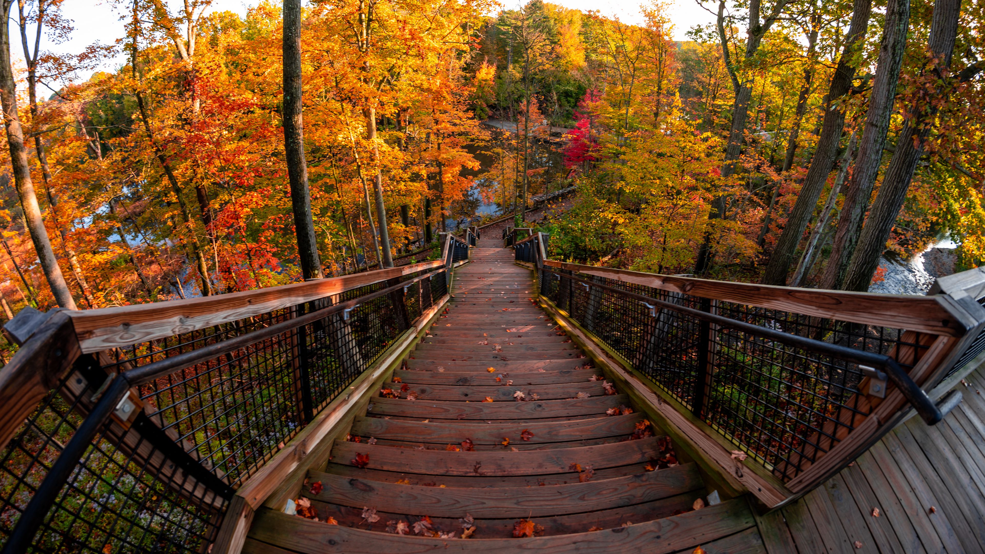 Stairs autumn trees 4k wallpaper