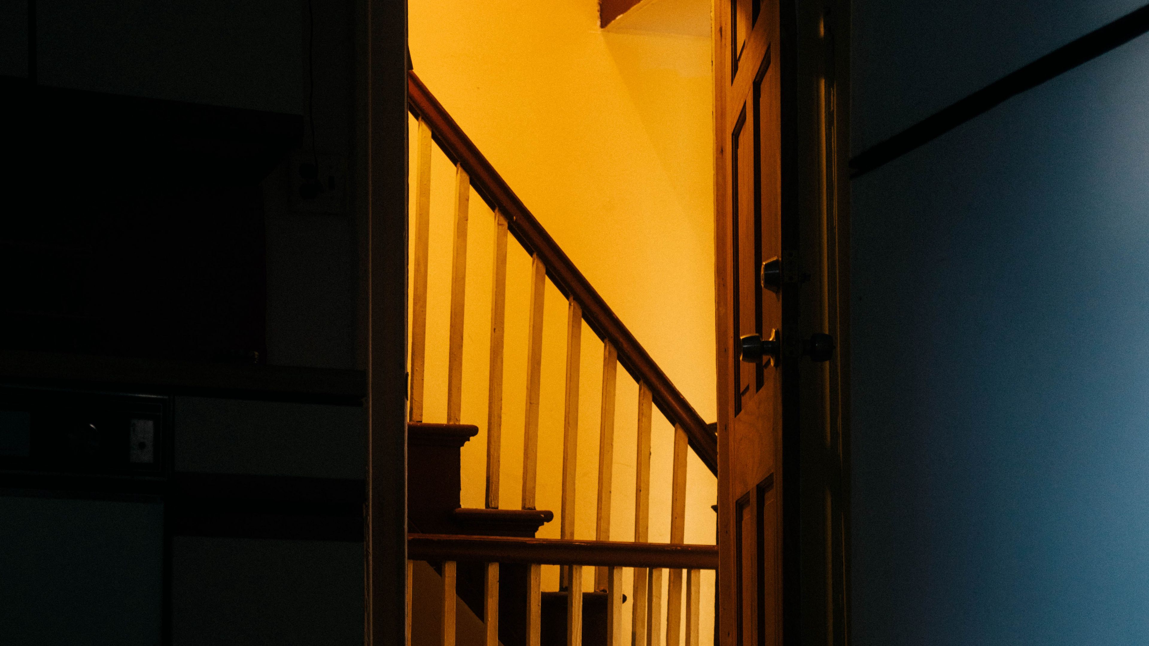 Stairs shadow door 4k wallpaper Description :