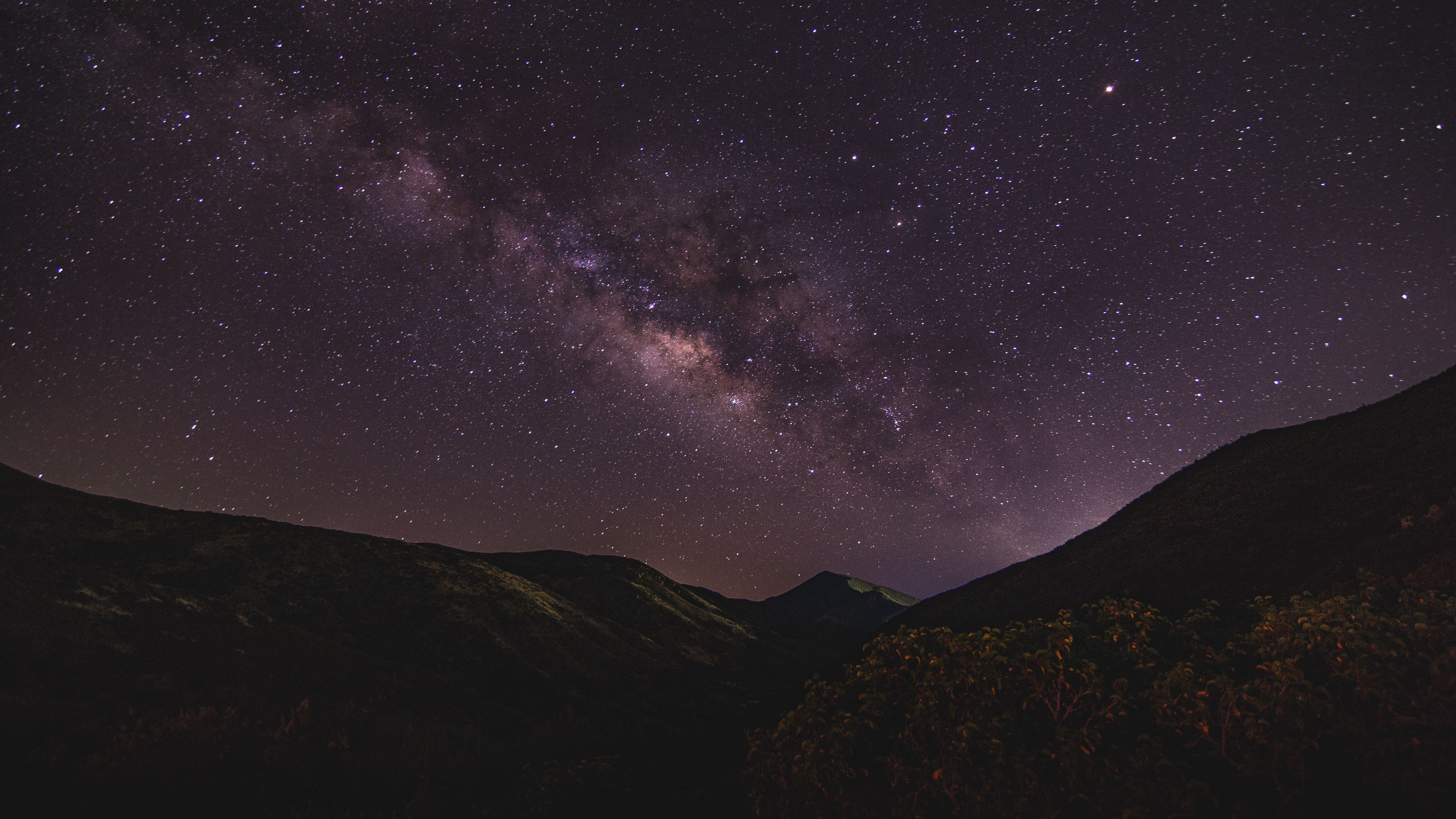 Starry sky mountains night milky way 4k wallpaper