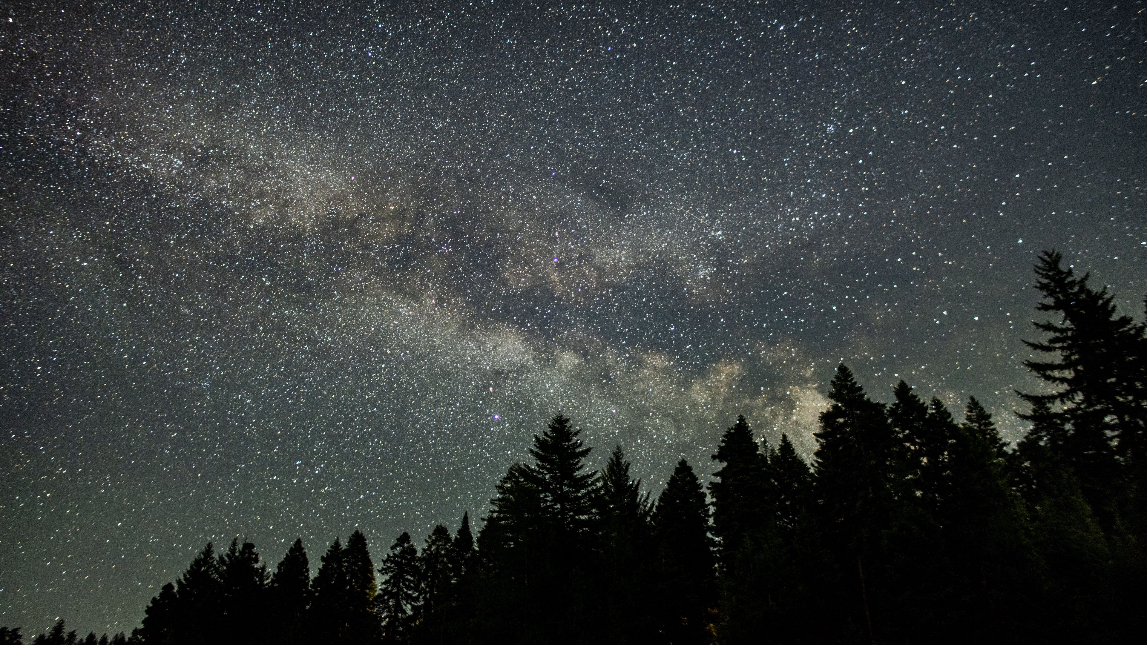 Starry sky stars spruce 4k wallpaper Description :