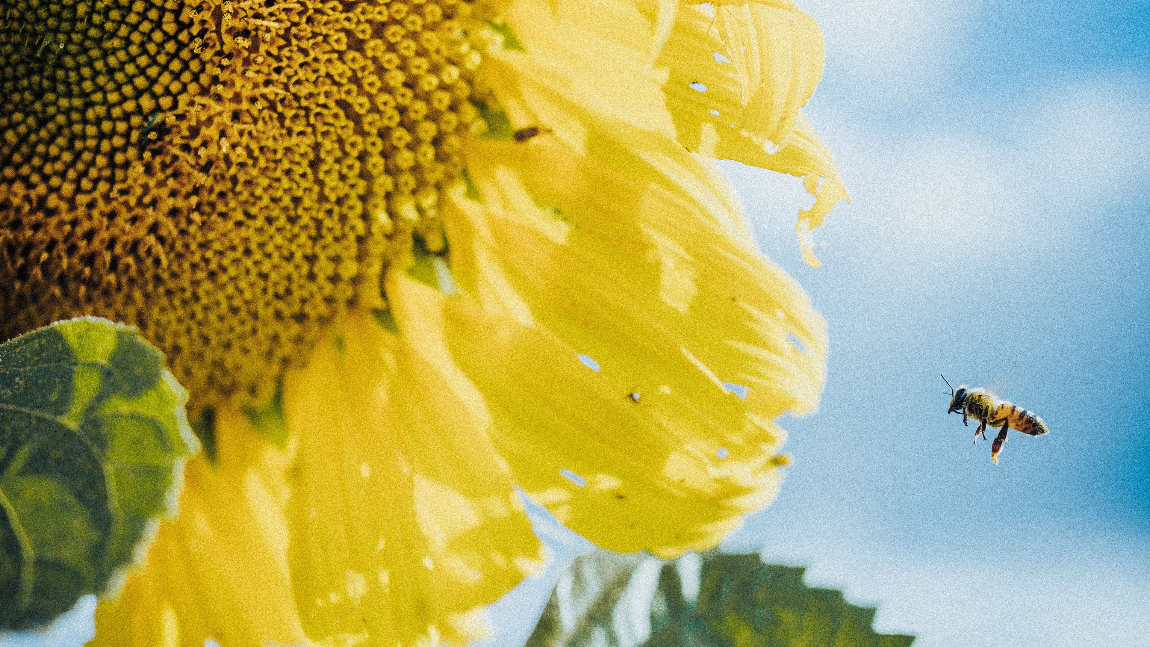 Sunflower bees flower 4k wallpaper
