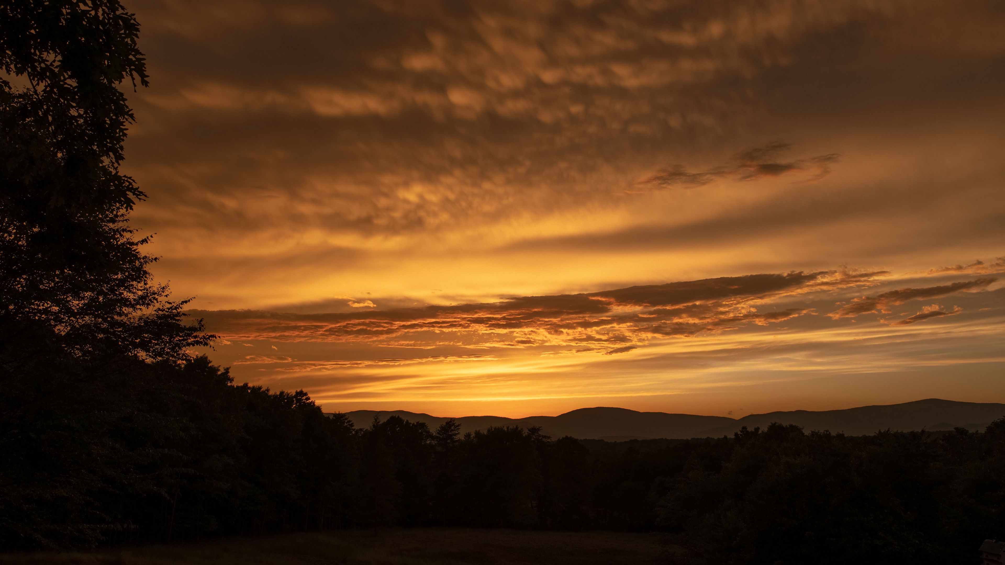 Sunset hills trees 4k wallpaper