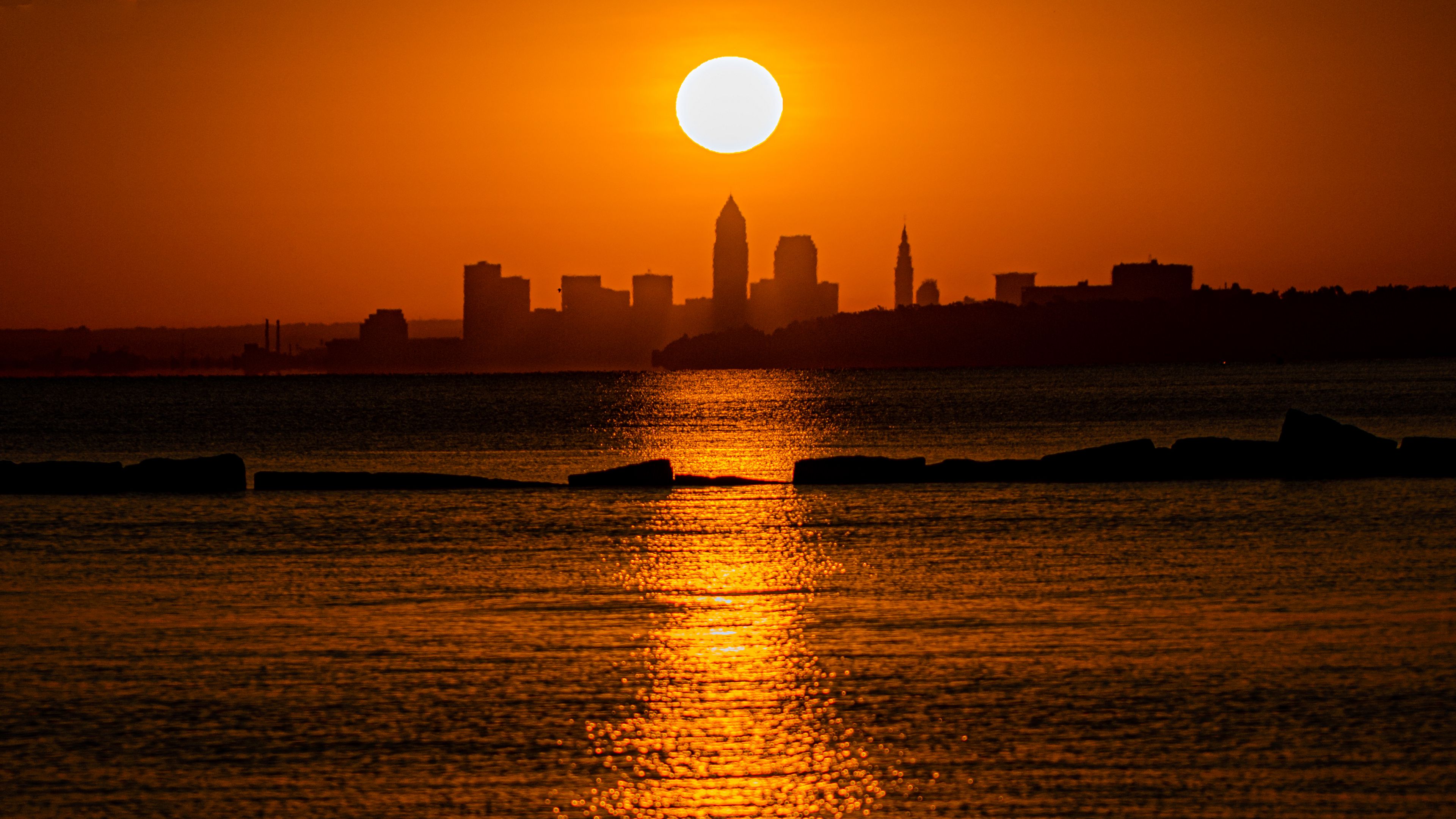Sunset sea city 4k wallpaper